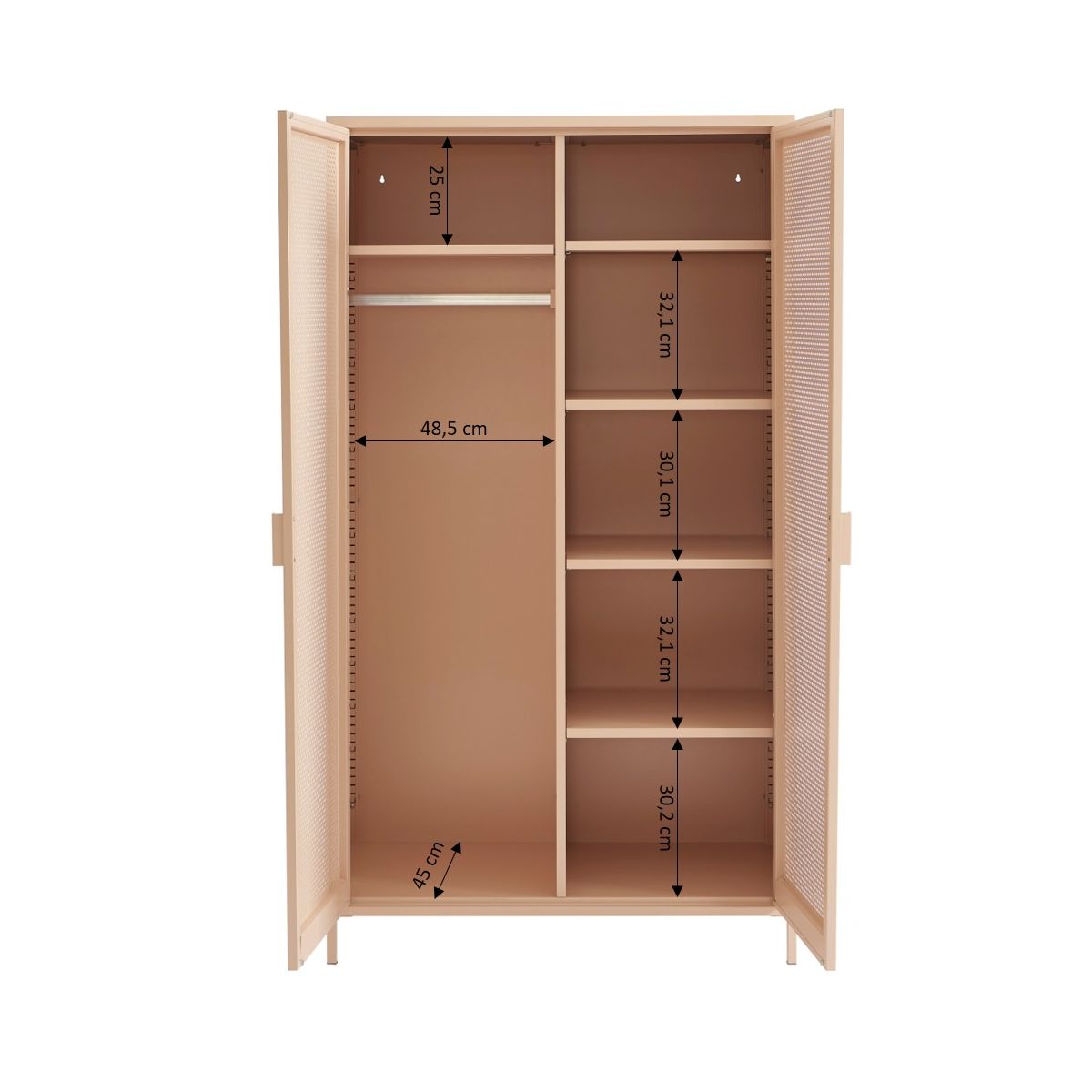 Avec ses dimensions L100 x P50 x H180 cm, cette armoire offre un volume de rangement important tout en conservant une silhouette épurée. Ses deux portes métalliques permettent de dissimuler facilement vêtements, accessoires ou objets du quotidien, pour un intérieur parfaitement organisé.