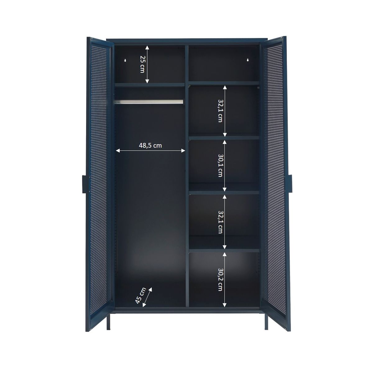 Avec ses dimensions L100 x P50 x H180 cm, cette armoire offre un volume de rangement important tout en conservant une silhouette épurée. Ses deux portes métalliques permettent de dissimuler facilement vêtements, accessoires ou objets du quotidien, pour un intérieur parfaitement organisé.