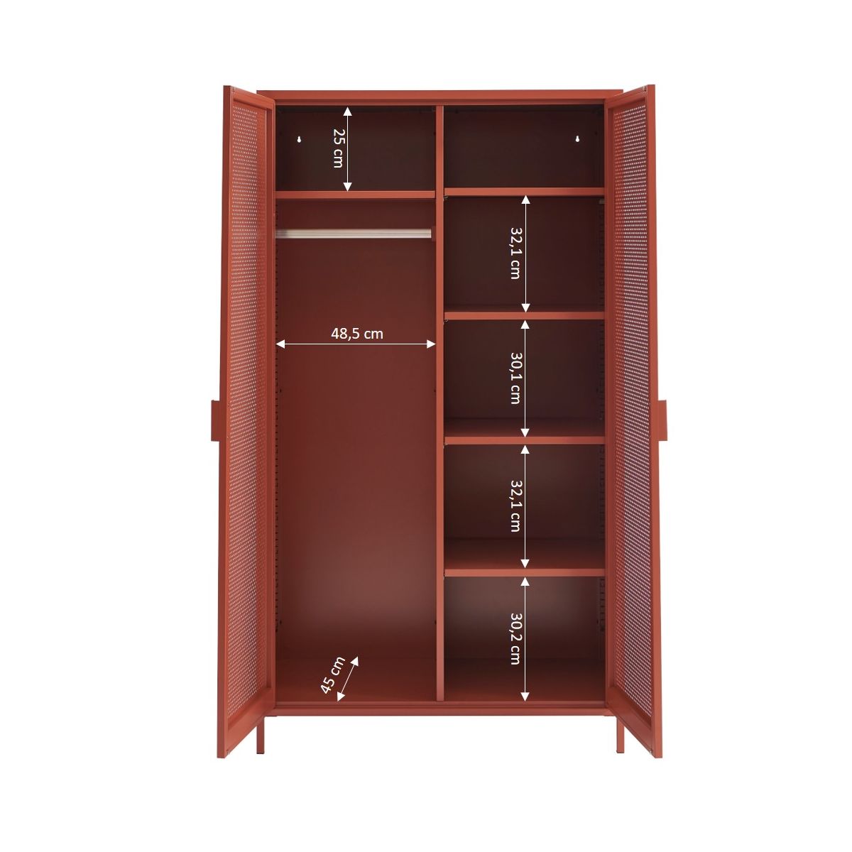 Avec ses dimensions L100 x P50 x H180 cm, cette armoire offre un volume de rangement important tout en conservant une silhouette épurée. Ses deux portes métalliques permettent de dissimuler facilement vêtements, accessoires ou objets du quotidien, pour un intérieur parfaitement organisé.