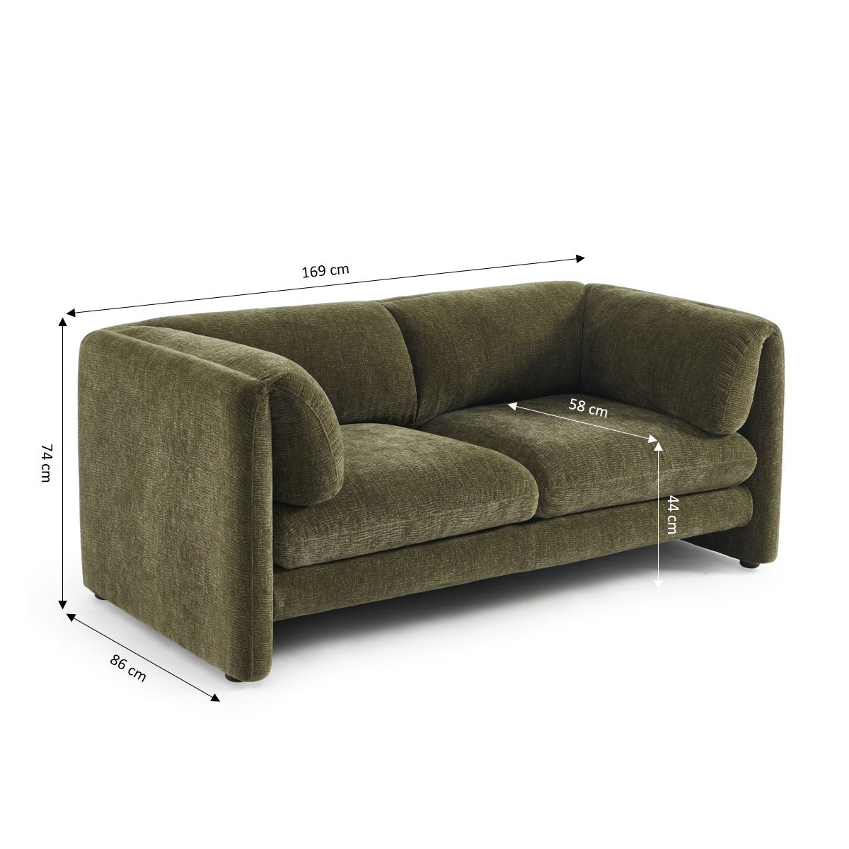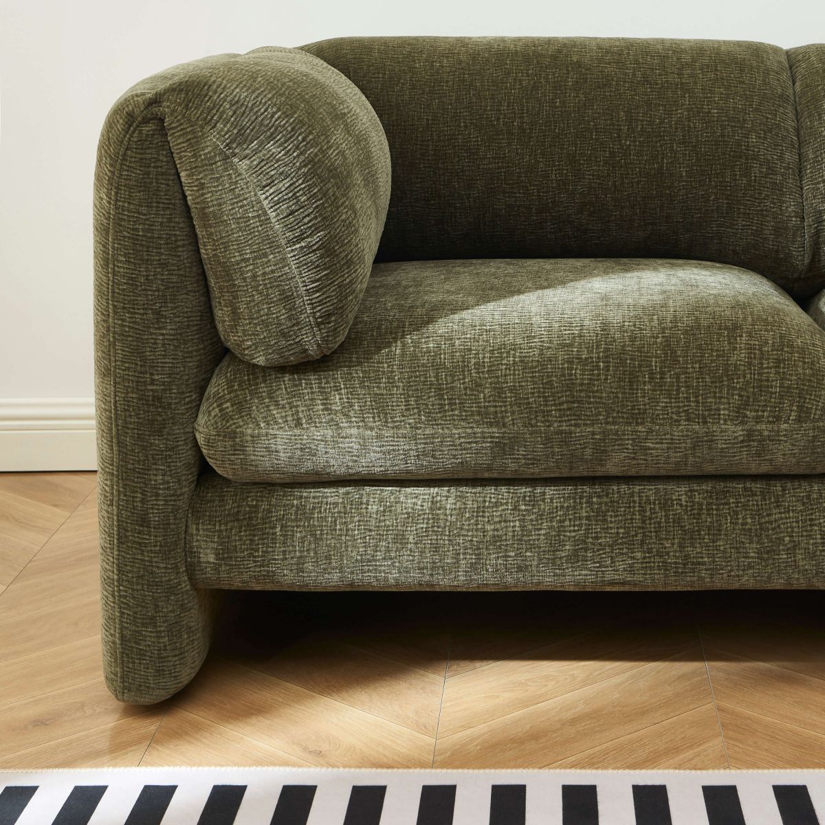 Le canapé droit fixe NIKKI se distingue par ses lignes arrondies et son allure moderne. Son revêtement en velours texturé 100% polyester offre un toucher agréable au quotidien. Son format compact le rend parfaitement adapté aux petits espaces comme aux salons plus spacieux.
