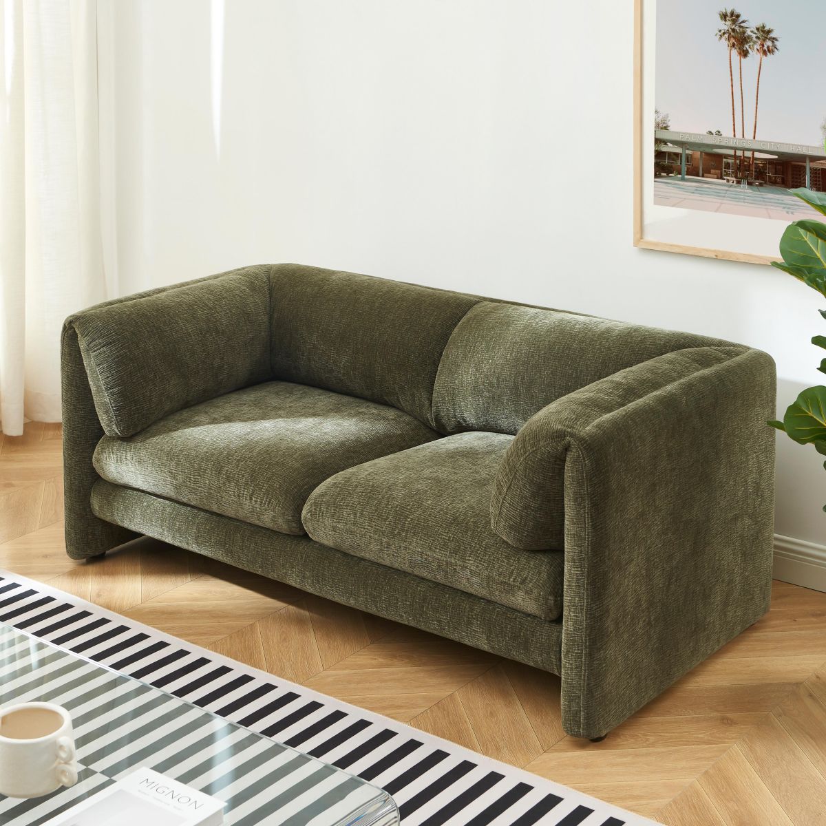 Le canapé NIKKI 2 places séduit par son design enveloppant et son revêtement en velours texturé tout doux. Compact et confortable, il est idéal pour créer un espace cosy dans votre salon.