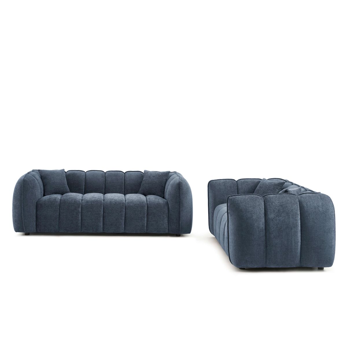 • Ensemble canapés droits fixes 3+2 MATILDA tissu chenille bleu
