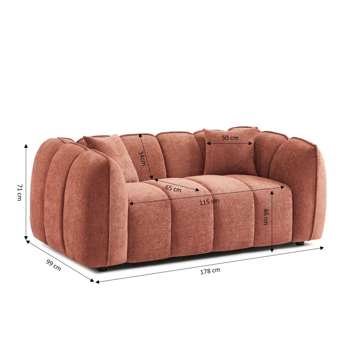 • Canapé droit MATILDA 2 places tissu chenille rouge brique