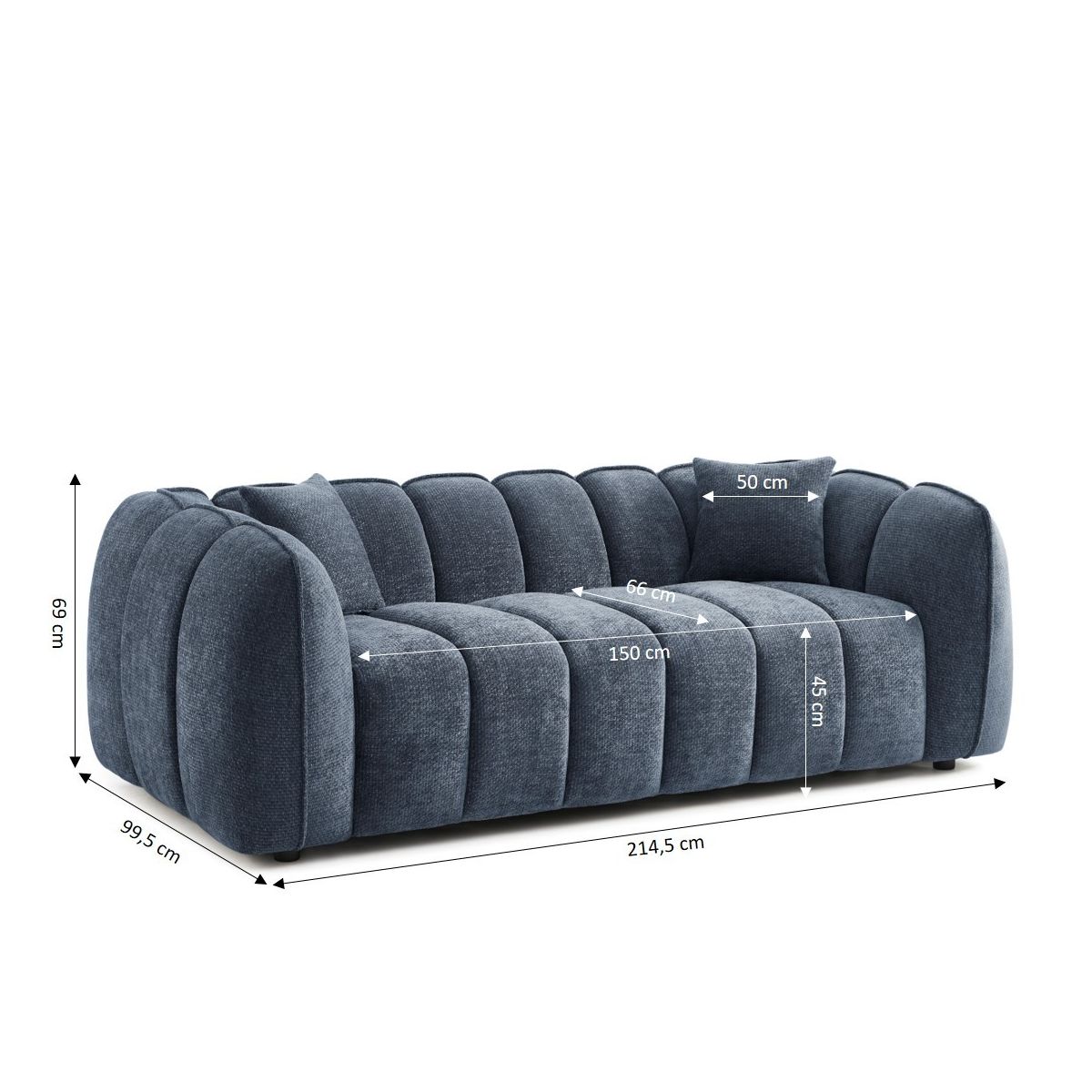 Le canapé MATILDA séduit par ses lignes simples et modernes. Son revêtement en tissu chenille bleu apporte une touche chaleureuse et lumineuse à votre intérieur, tout en s'adaptant facilement à différents styles de déco.