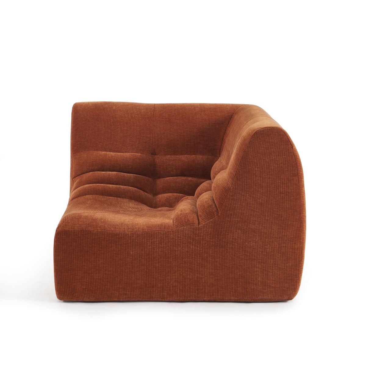 Confortable et modulable, la chauffeuse d'angle une place JANIS en velours s'intègre facilement dans tous les espaces de vie pour créer un coin détente sur mesure.