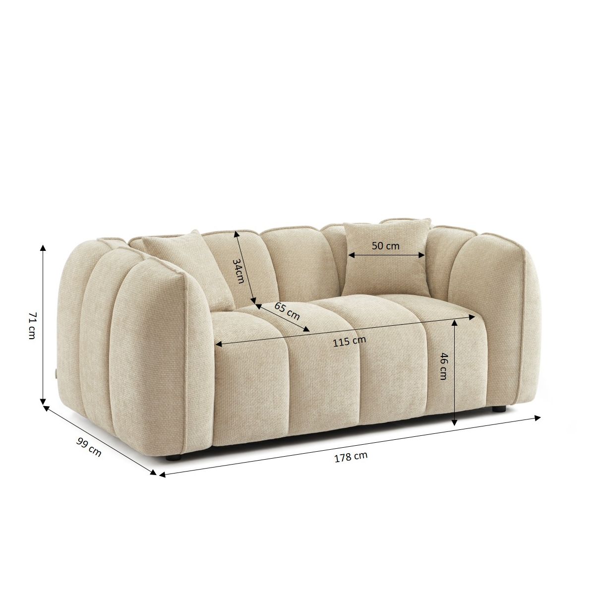• Canapé droit MATILDA 2 places tissu chenille beige