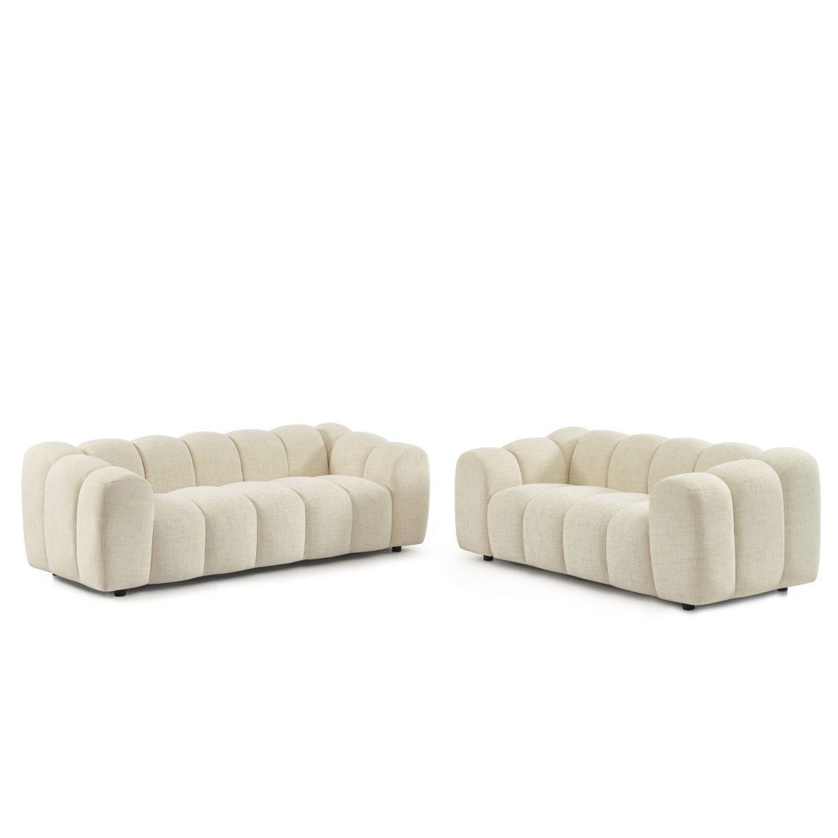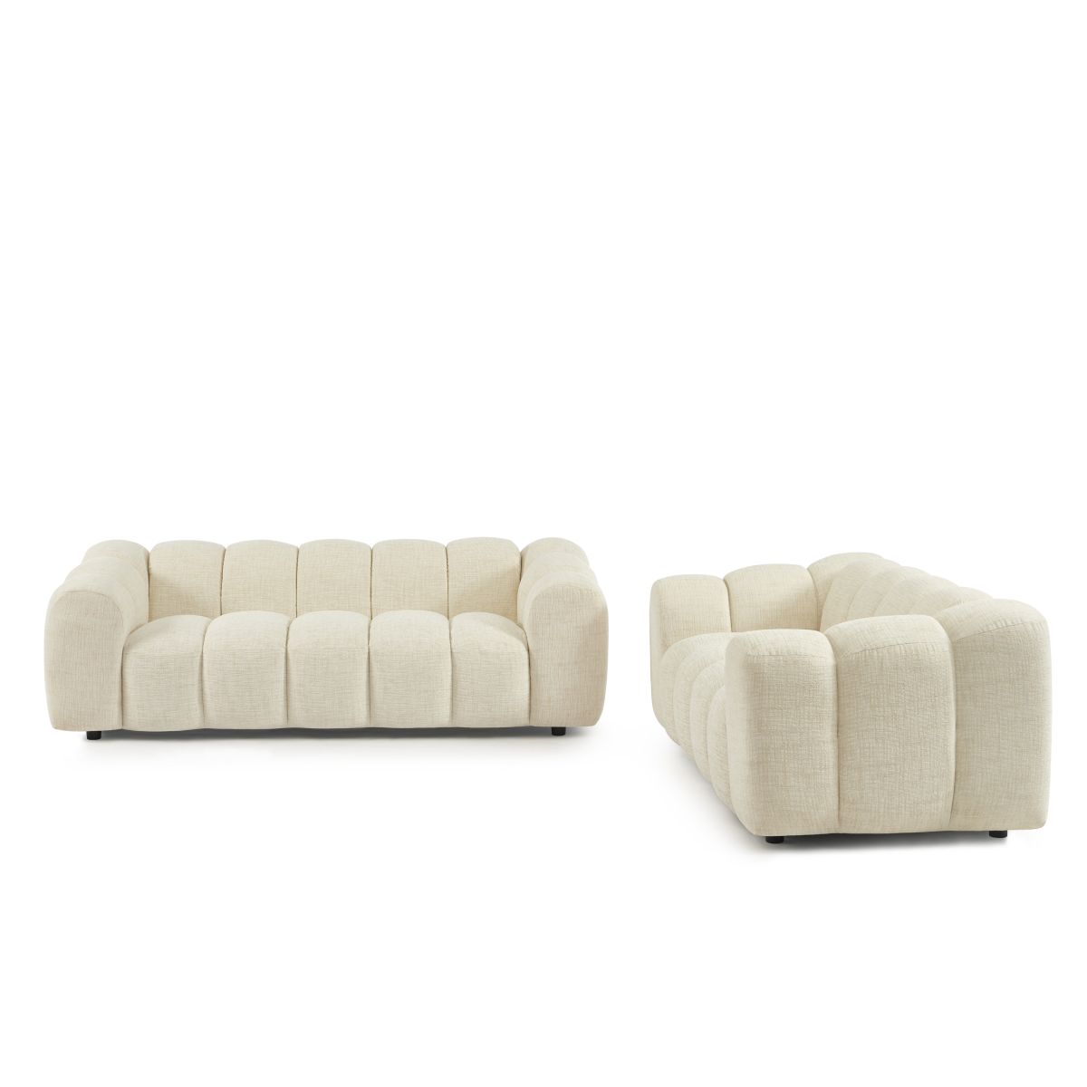 Ensemble canapés droits fixes 3+2 SUNNY tissu tweed écru