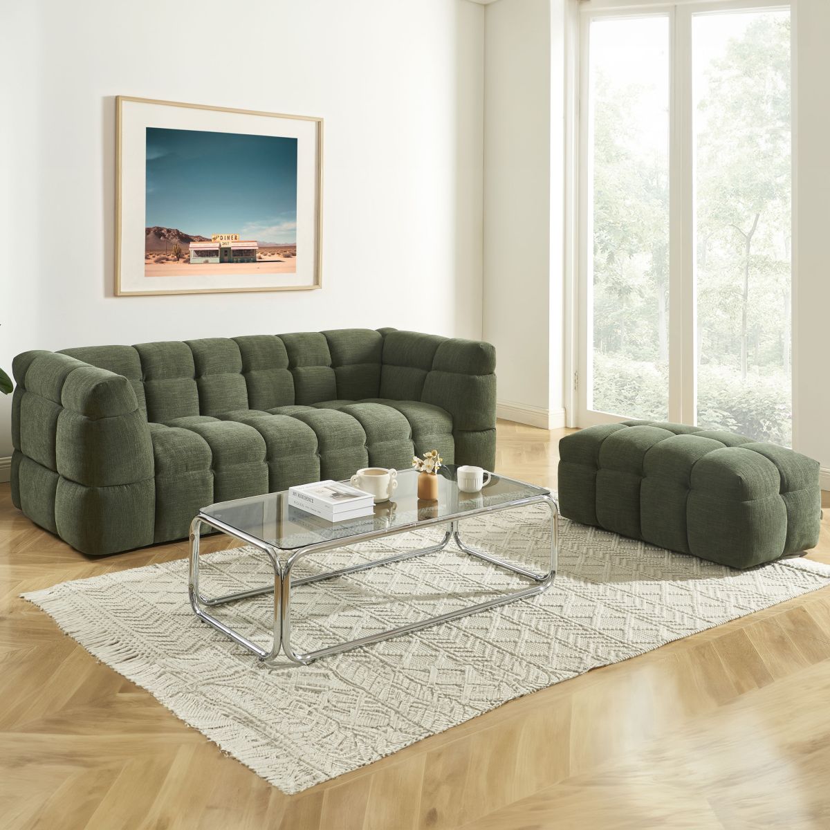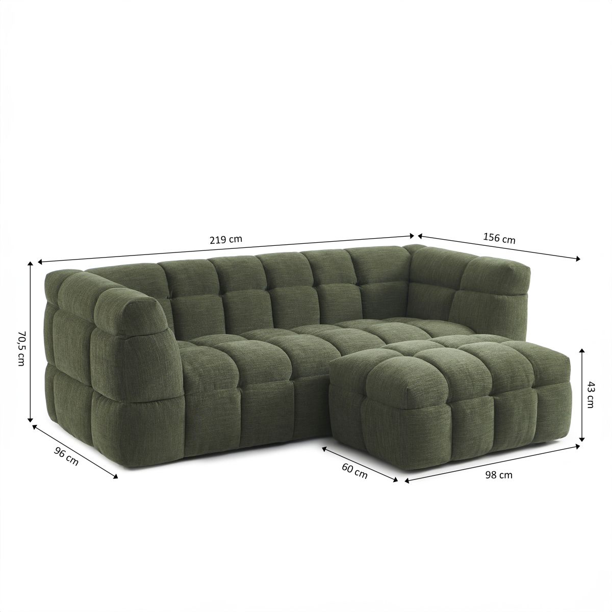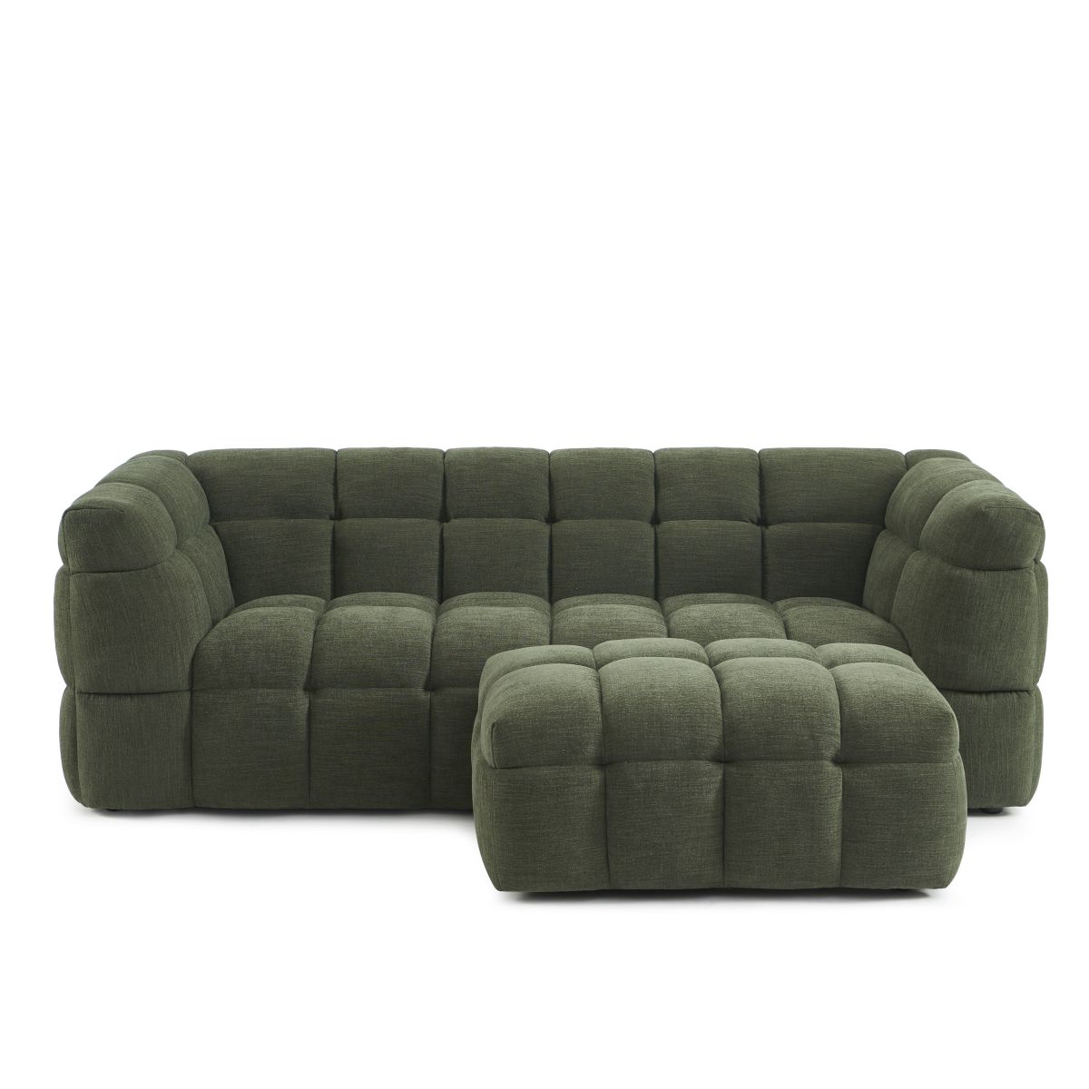 Ensemble canapé droit 3 places + pouf MOODY tissu lin vert