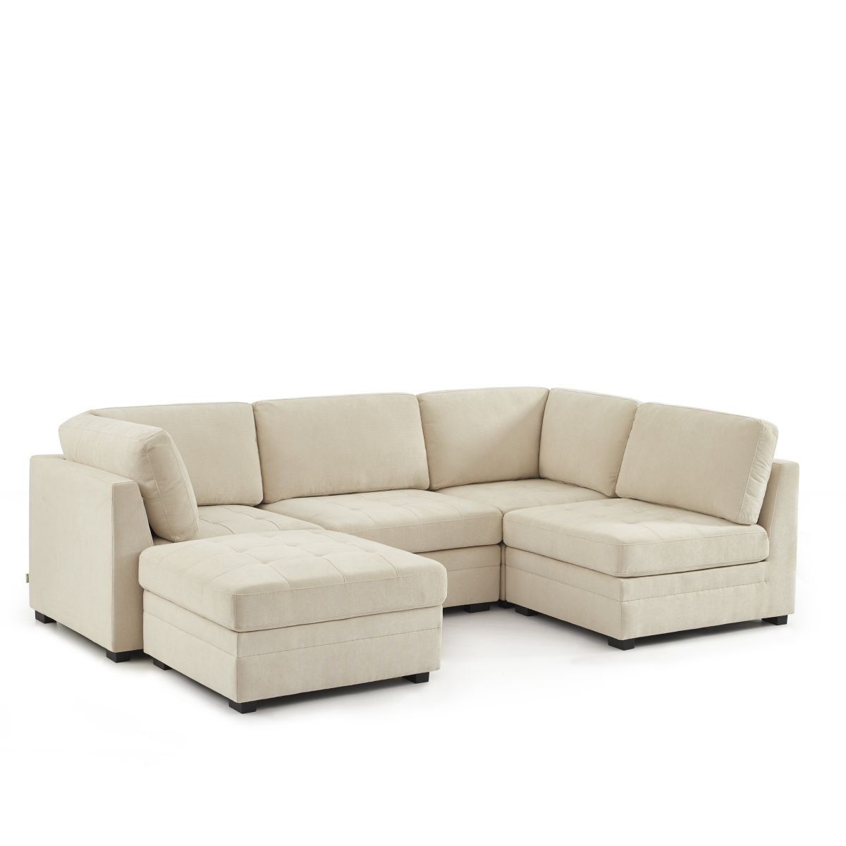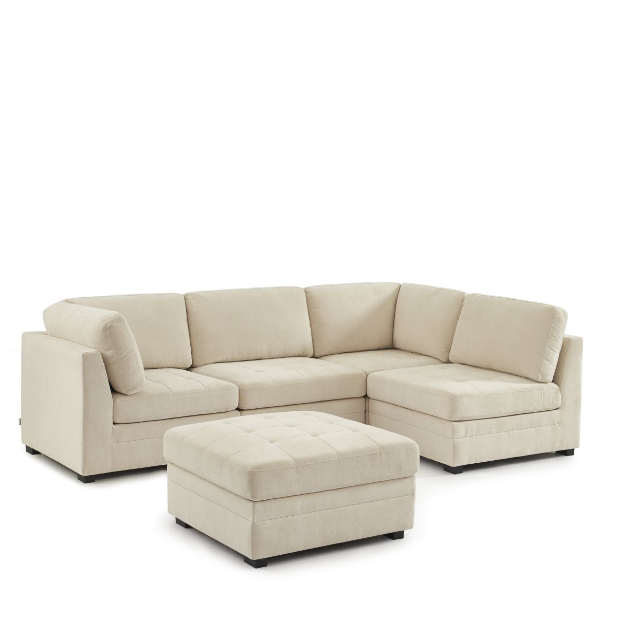Composé de chauffeuses et d’un pouf, le canapé d’angle BILLIE s’adapte à vos envies pour créer un salon chaleureux et moderne.