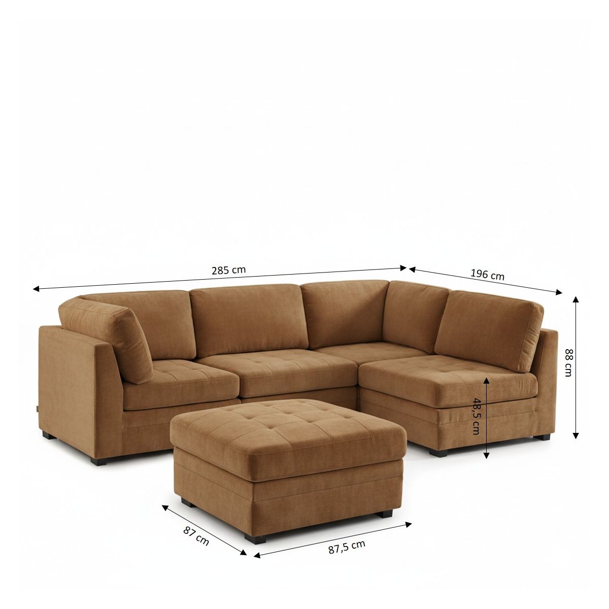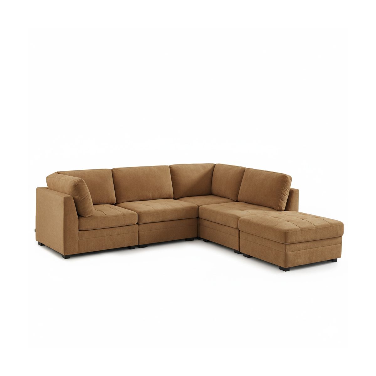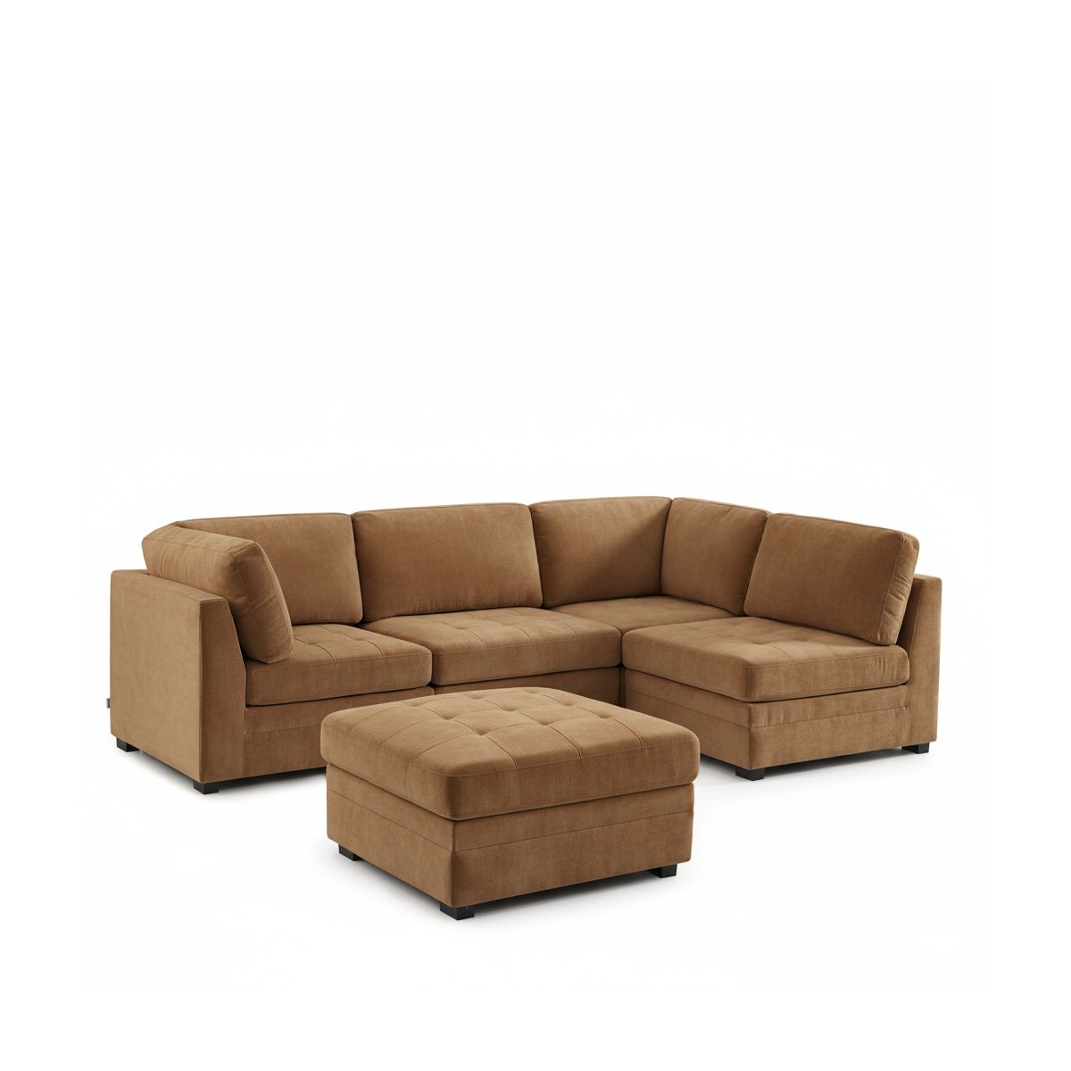 Composé de chauffeuses et d’un pouf, le canapé d’angle BILLIE s’adapte à vos envies pour créer un salon chaleureux et moderne.
