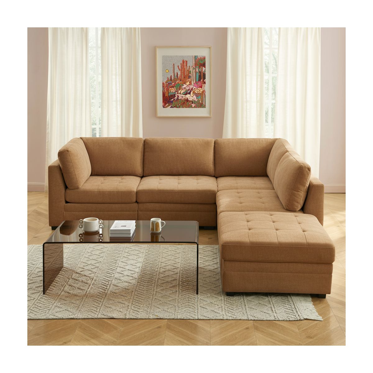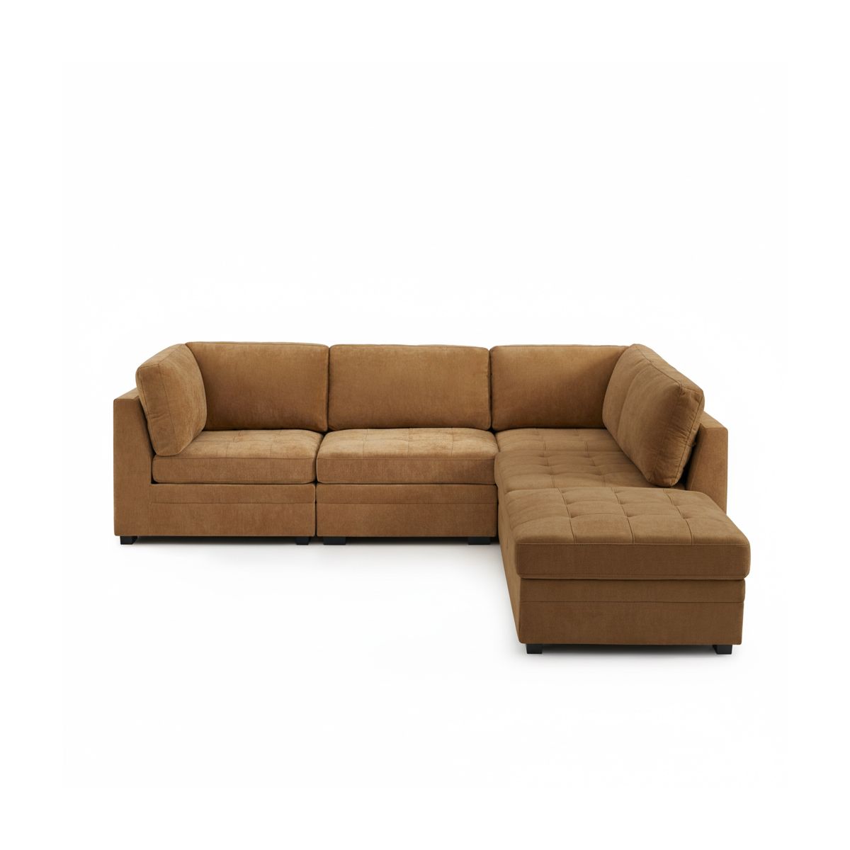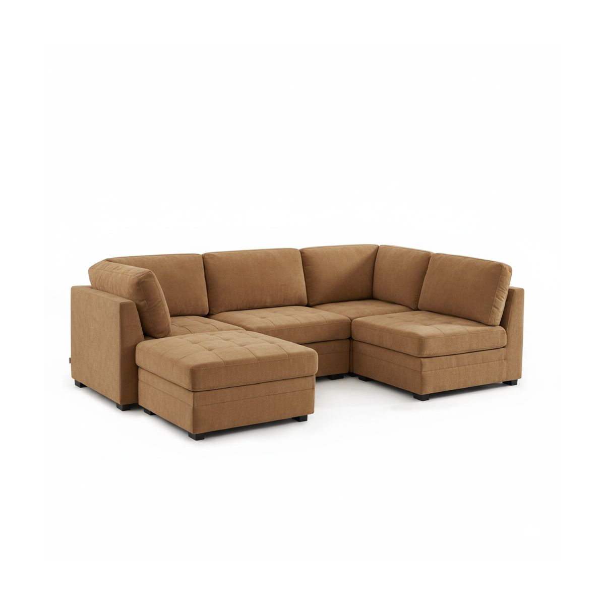 Composé de chauffeuses et d’un pouf, le canapé d’angle BILLIE s’adapte à vos envies pour créer un salon chaleureux et moderne.