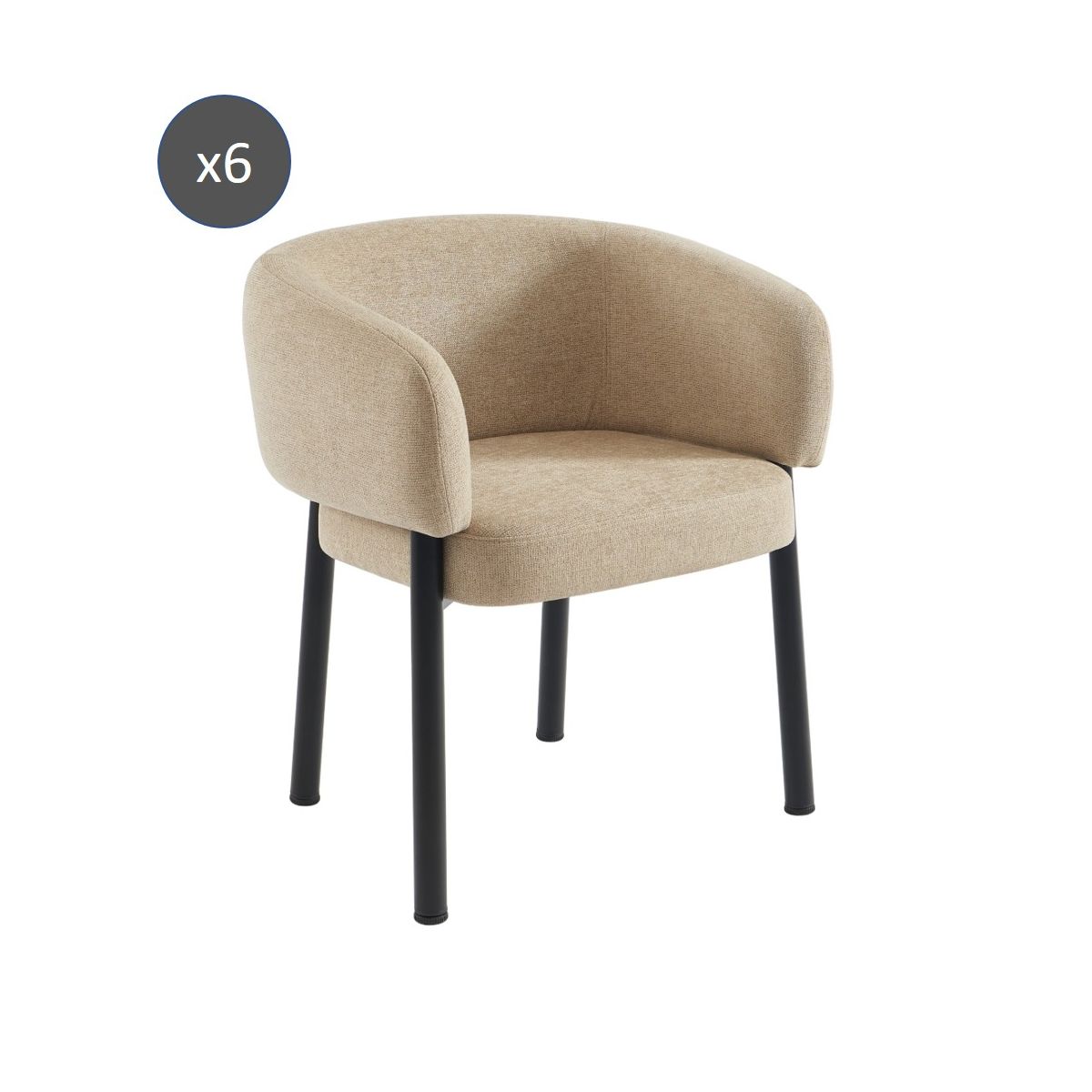 Optez pour le lot de 6 fauteuils de table ABELIA ! Combinant confort, élégance et une touche vintage, ce fauteuil rembourré avec accoudoirs est conçu pour offrir une assise enveloppante et confortable.