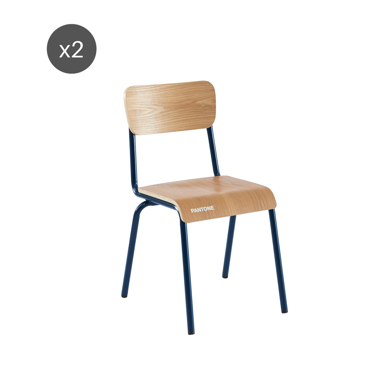 • Lot de 2 chaises PANTONE bleu nuit et placage frêne pieds métal