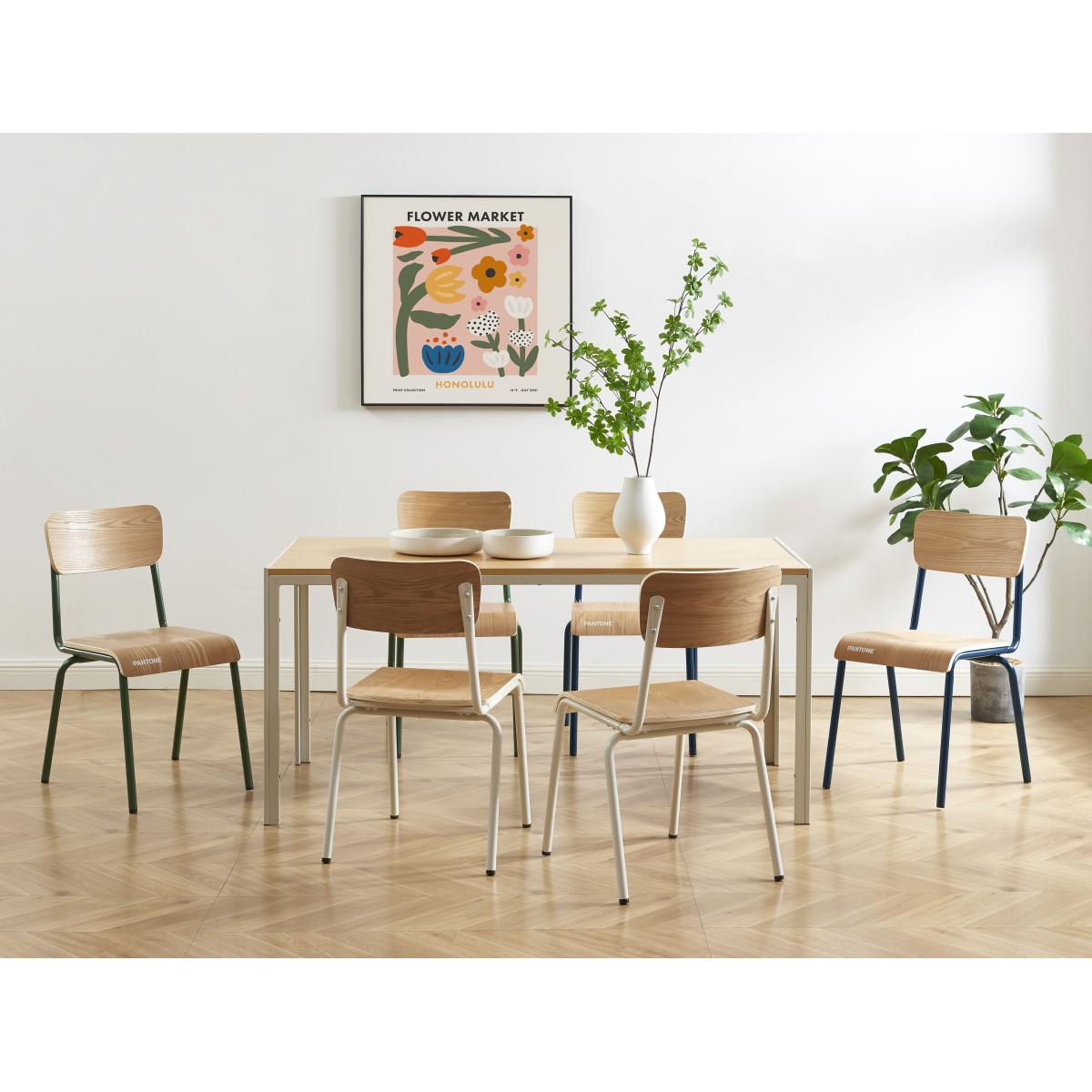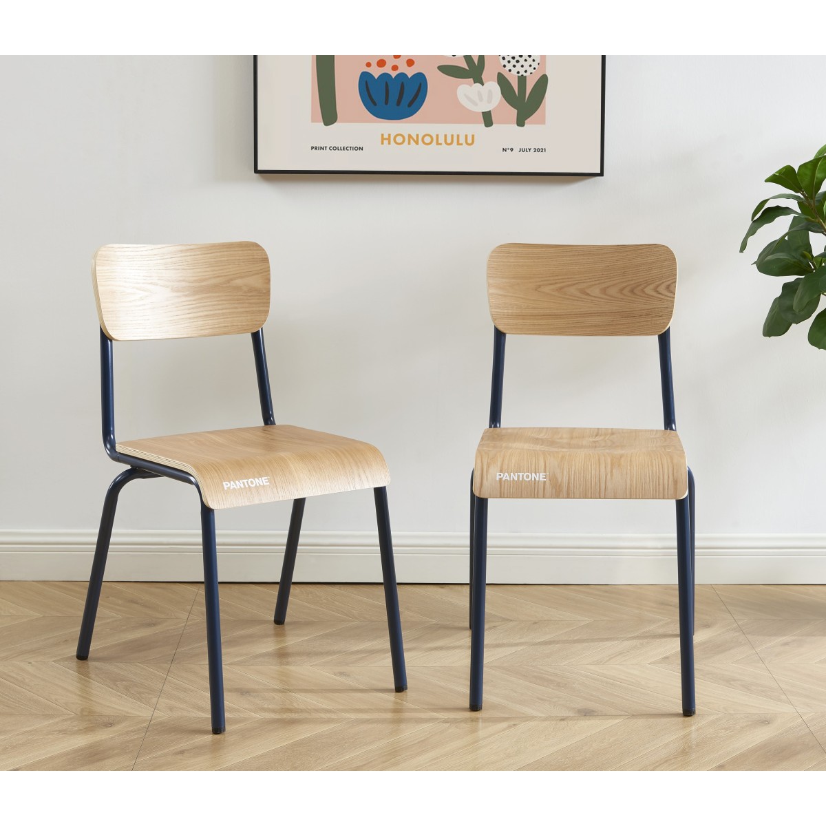 Envie de donner à votre intérieur un style vintage et écolier ? Alors craquez pour ce lot de 2 chaises PANTONE, au design qui vous rendra nostalgique. On se rappelle tout particulièrement de ce dossier et de cette assise en contreplaqué bois clair et de cette structure en acier arrondi.