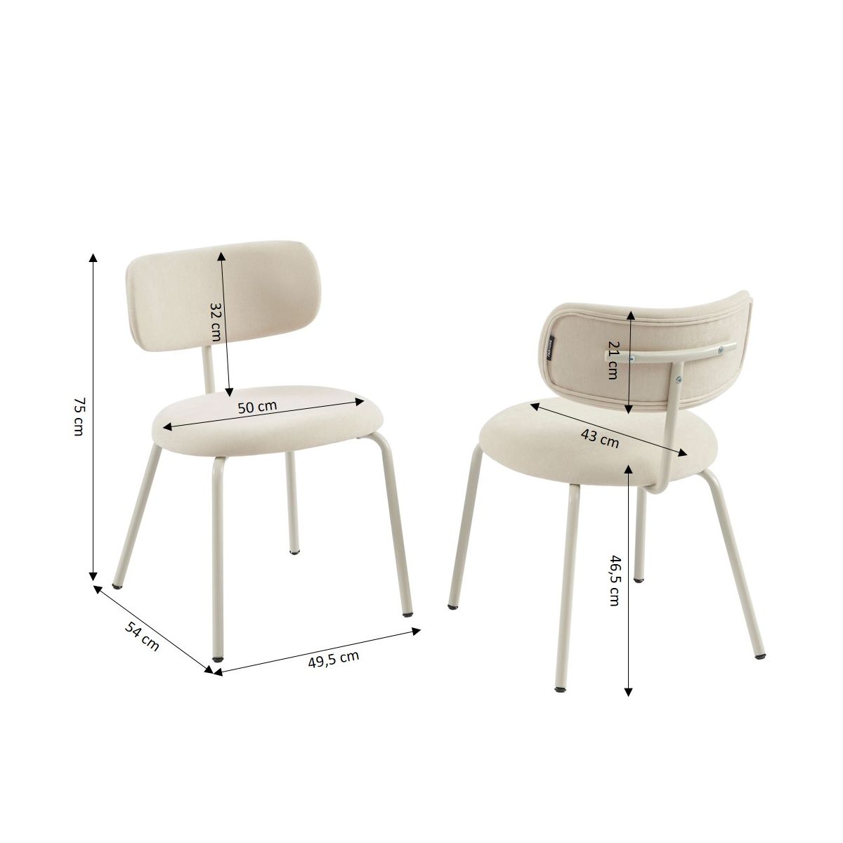 Chaque chaise est dotée d'une structure en MDF solide et d'un rembourrage en mousse de 4 cm, garantissant confort et maintien au quotidien. Leur revêtement en tissu 100% polyester apporte douceur au toucher et résistance à un usage quotidien.