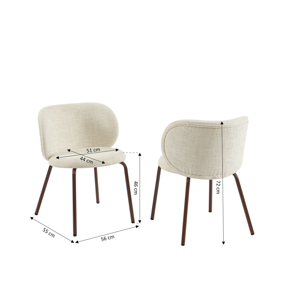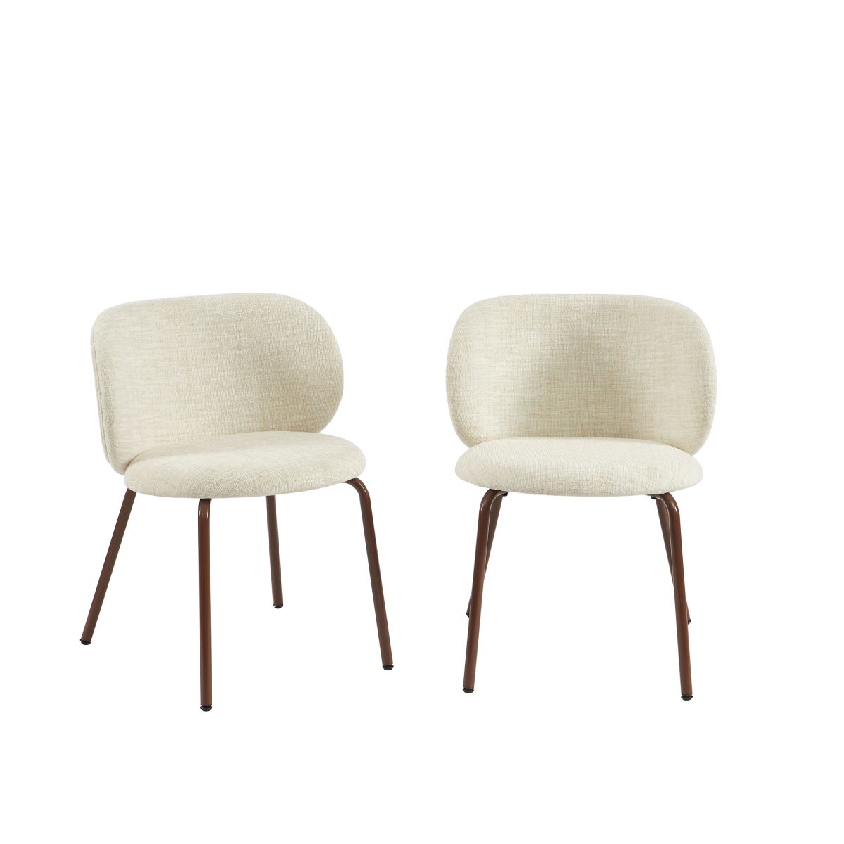 Lot de 2 chaises SERENA tissu chenille écru et pieds métal marron
