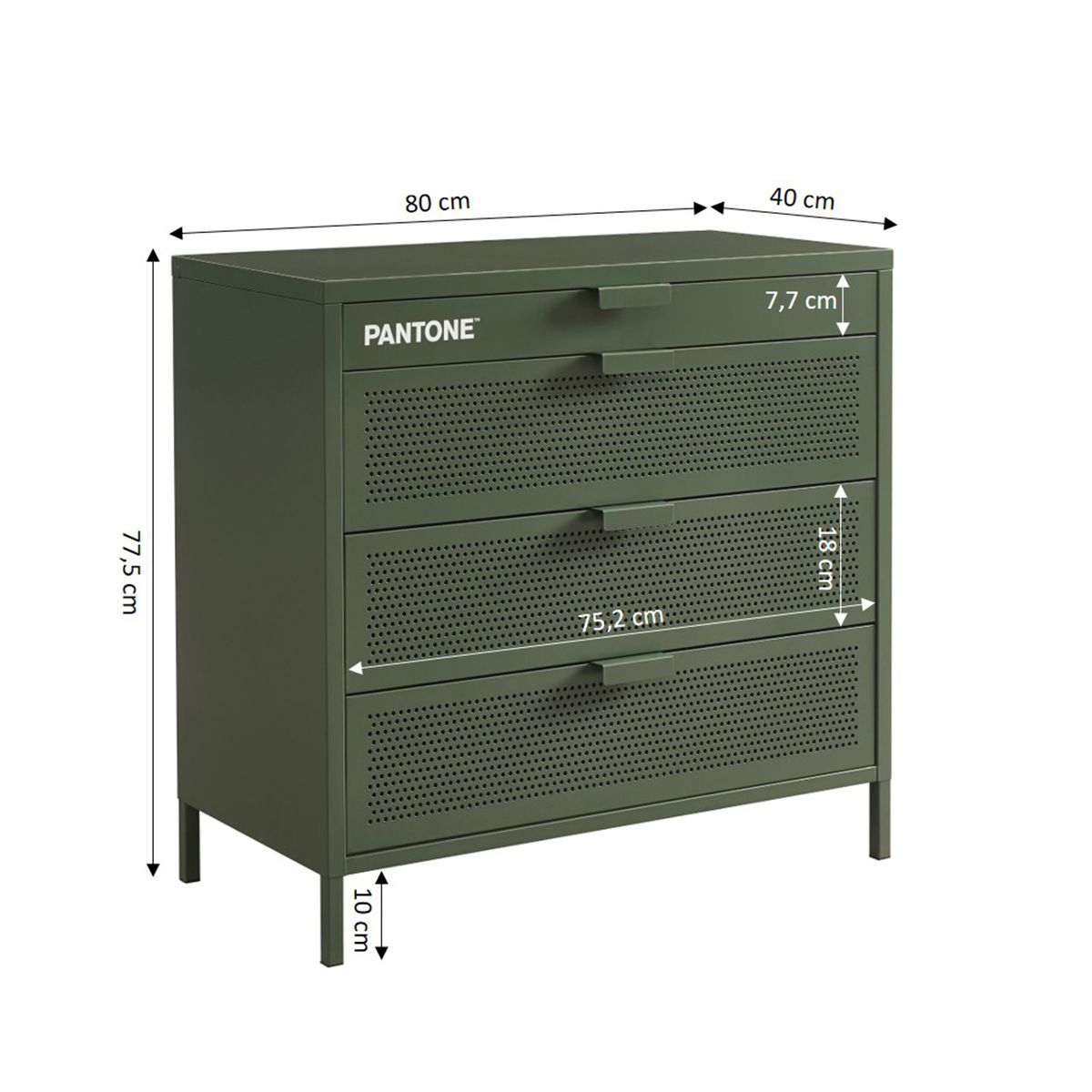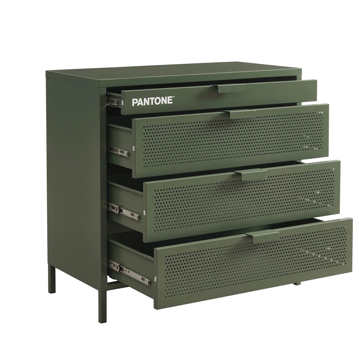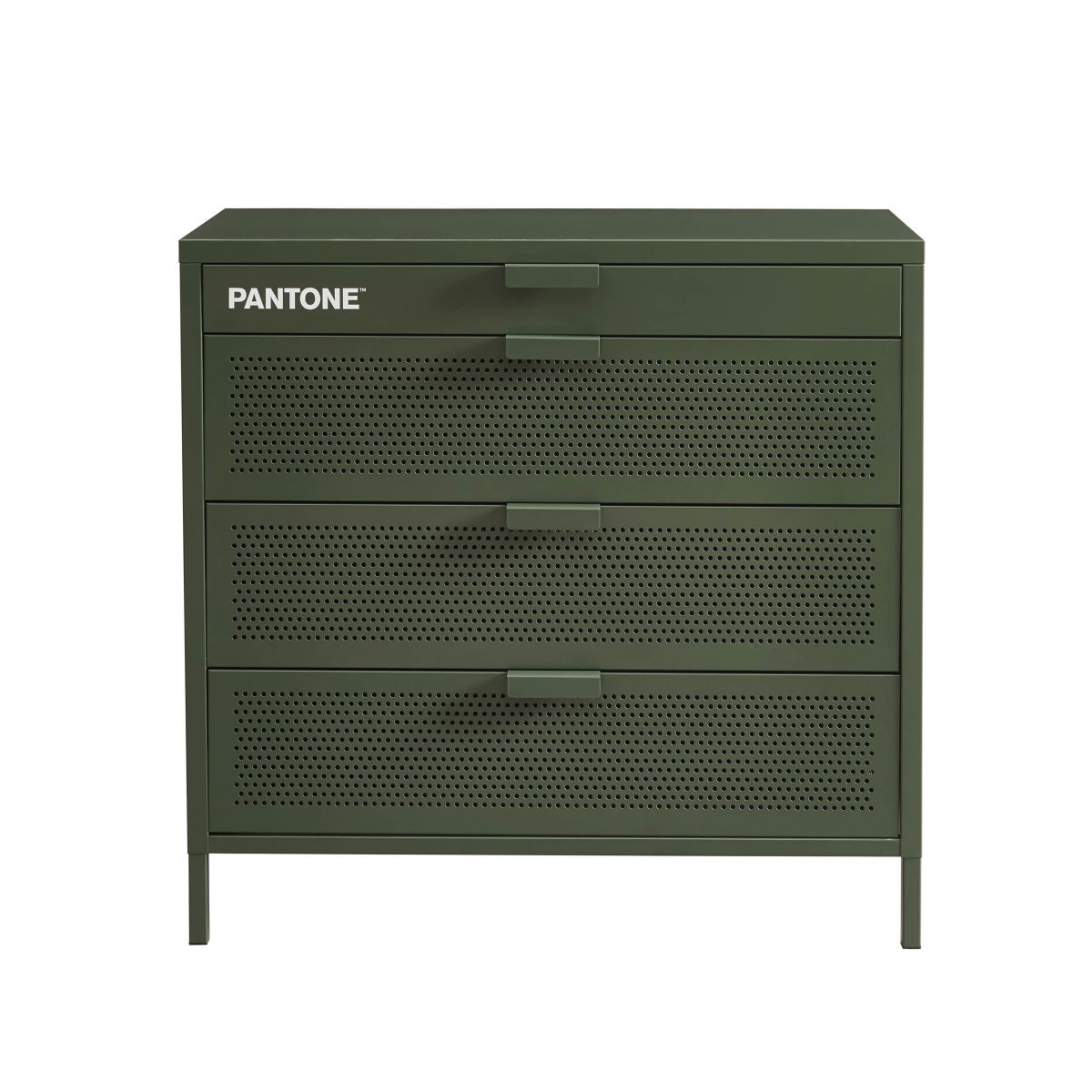 Commode PANTONE métal 4 tiroirs vert olive 80cm