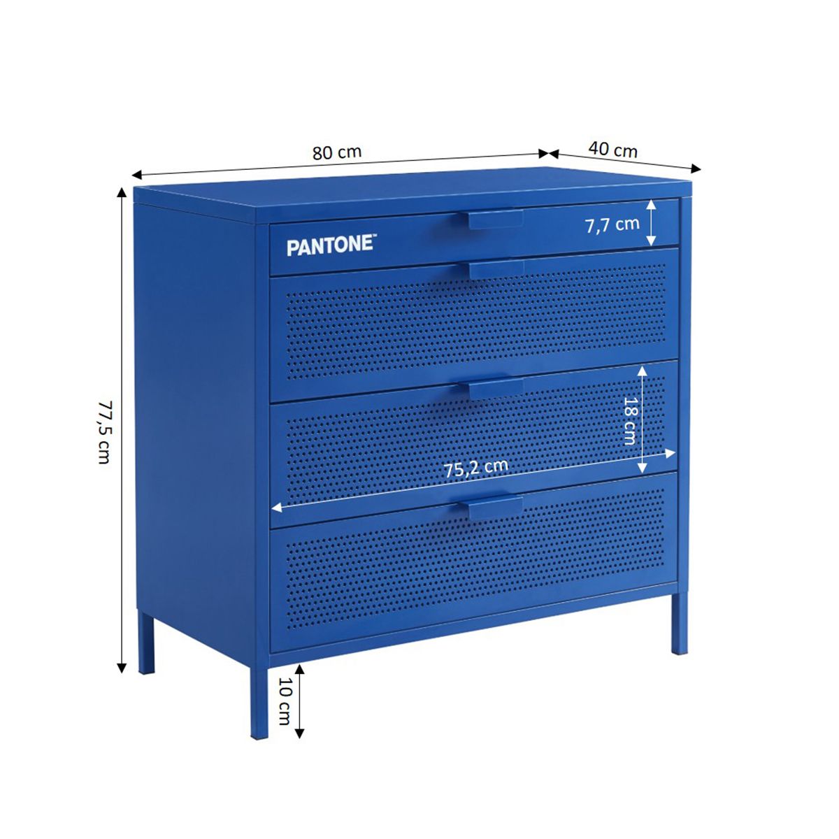 Commode PANTONE métal 4 tiroirs bleu électrique 80 cm