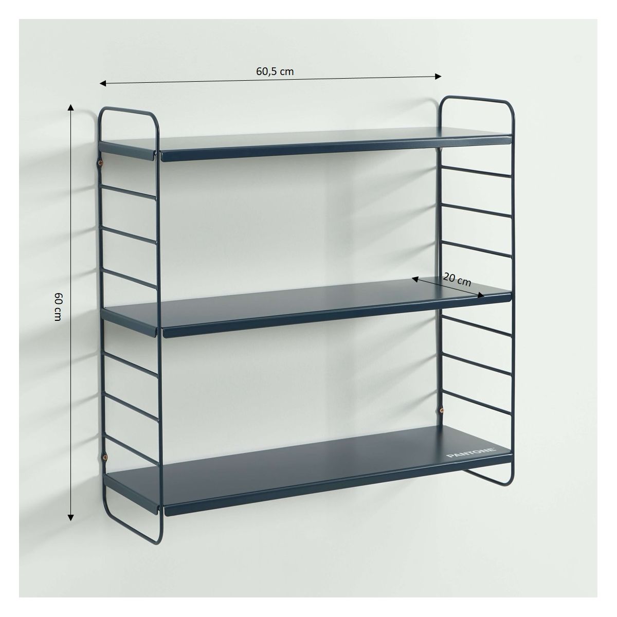 • Etagère murale 3 niveaux PANTONE métal bleu nuit 60,5x20cm