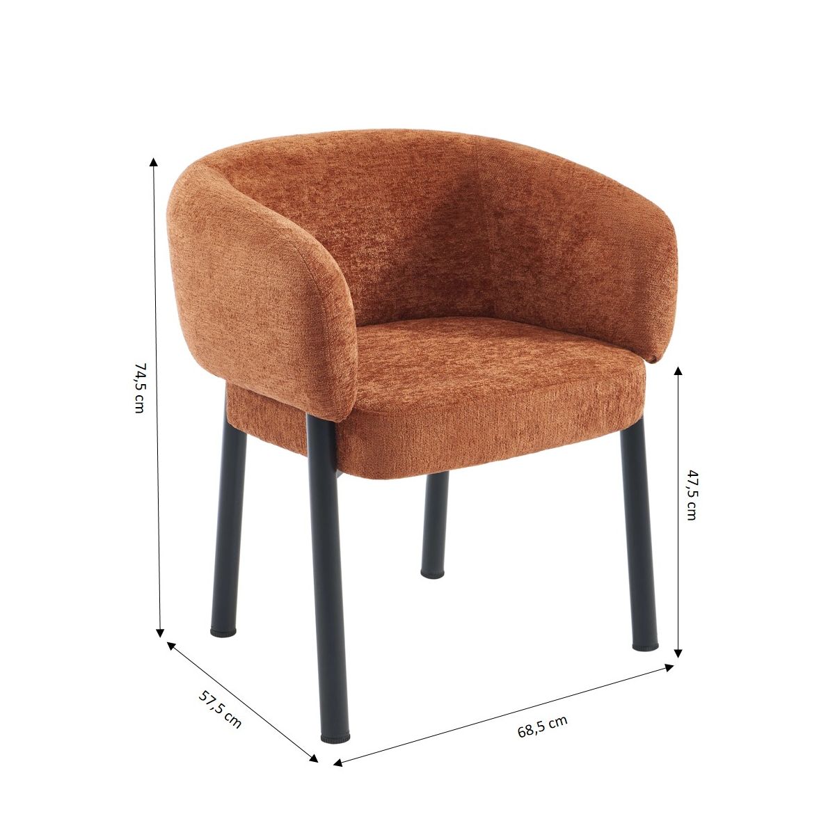 Optez pour le fauteuil de table ABELIA ! Combinant confort, élégance et une touche vintage, ce fauteuil rembourré avec accoudoirs est conçu pour offrir une assise enveloppante et confortable.