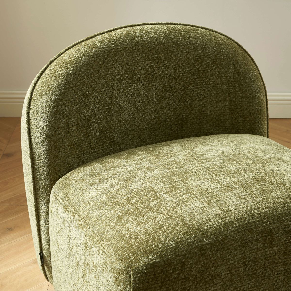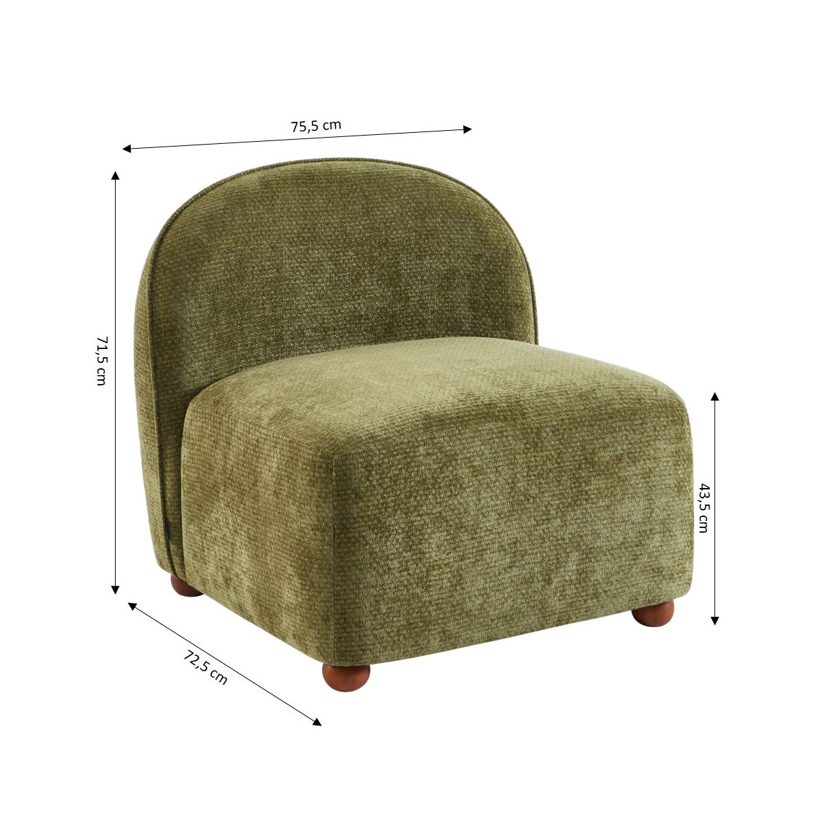 Le fauteuil JUDY séduit par son style moderne et chaleureux. Son tissu chenille, doux au toucher, apporte une atmosphère cocooning à la pièce. Les pieds boules en bois teintés noyer ajoutent une note originale et sophistiquée qui fait toute la différence.