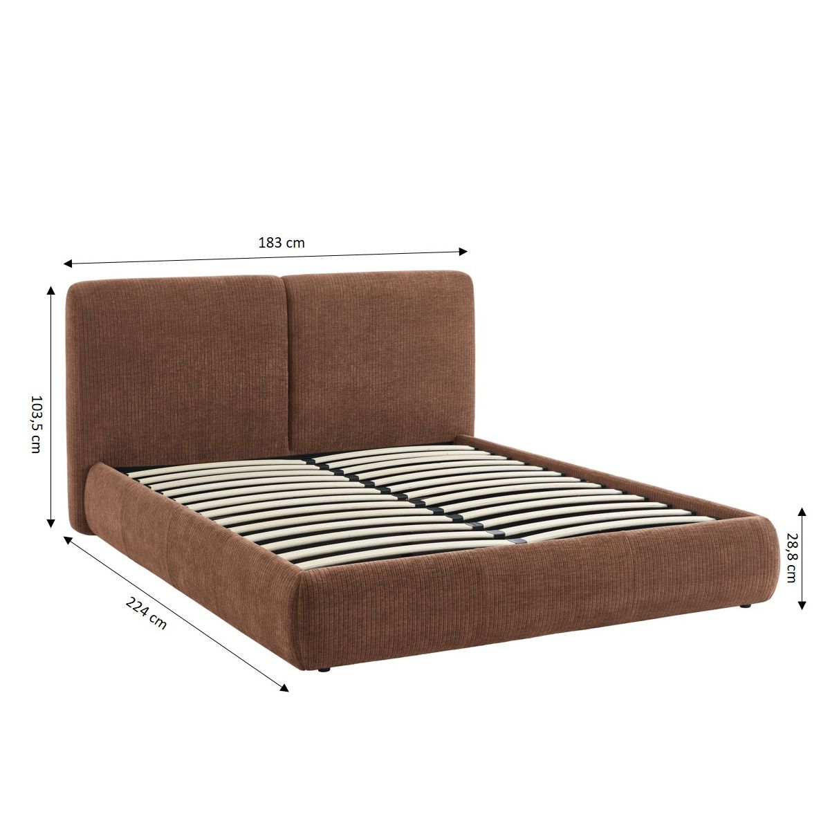 Avec son revêtement en velours côtelé et son coffre de rangement intégré, le lit YOKA combine style et praticité pour une chambre fonctionnelle.