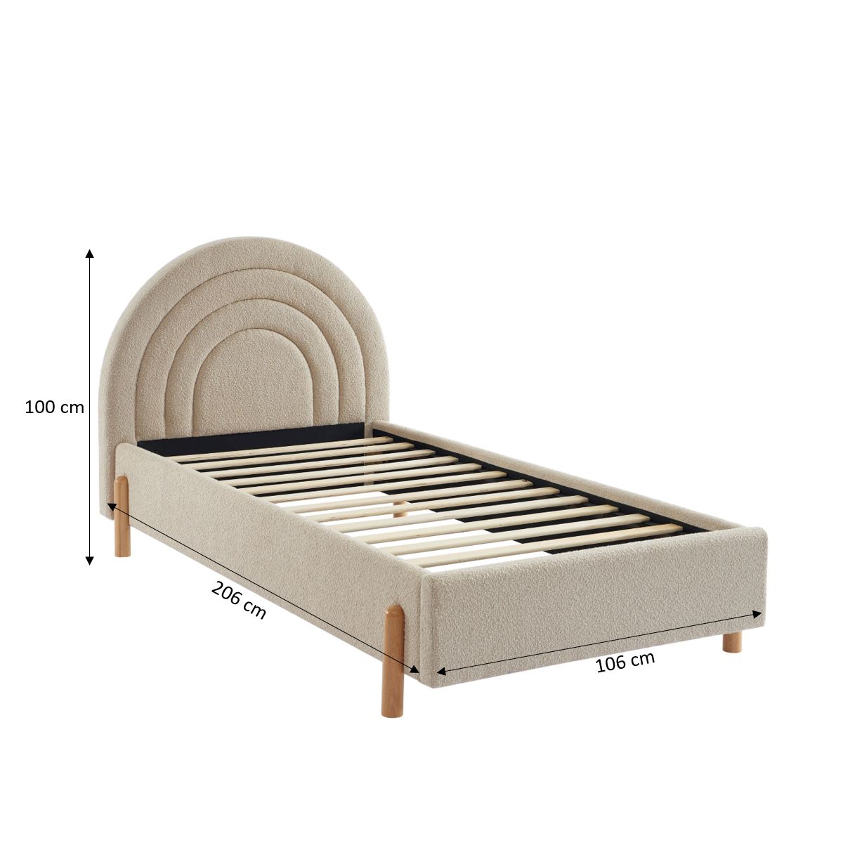 Lit BOO. Tête de lit avec un design arc-en-ciel pour apporter de la douceur. Dimensions : L208 x P106 x H100 cm.