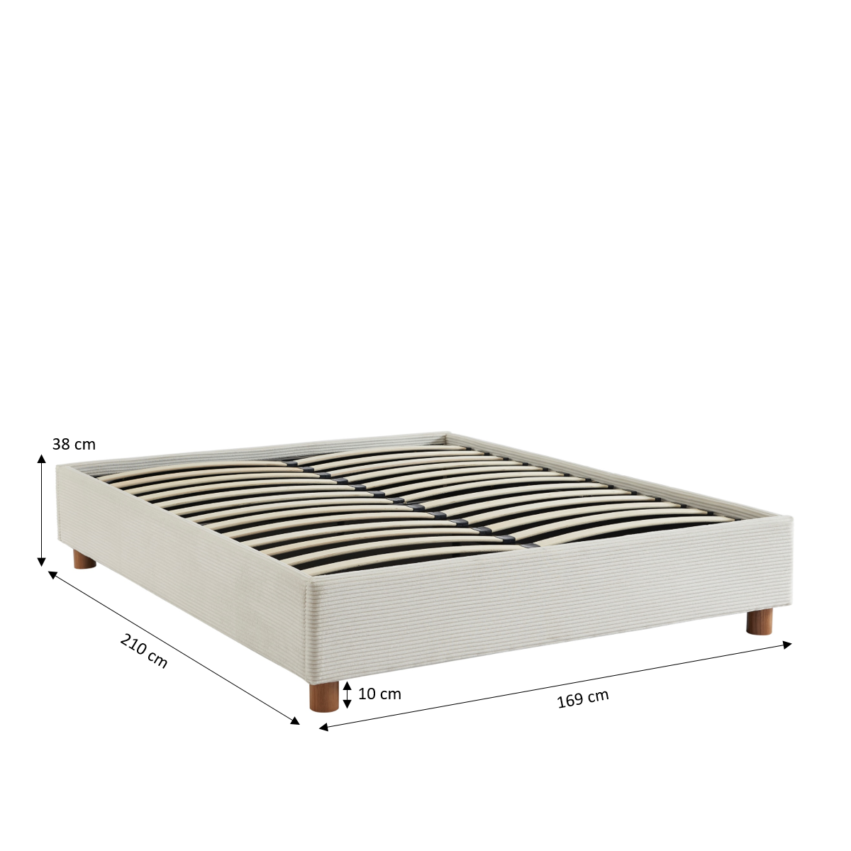 Enfin, les pieds en frêne massif de ce lit coffre en assurent la stabilité tout en mettant en valeur la texture du revêtement sur le cadre.
