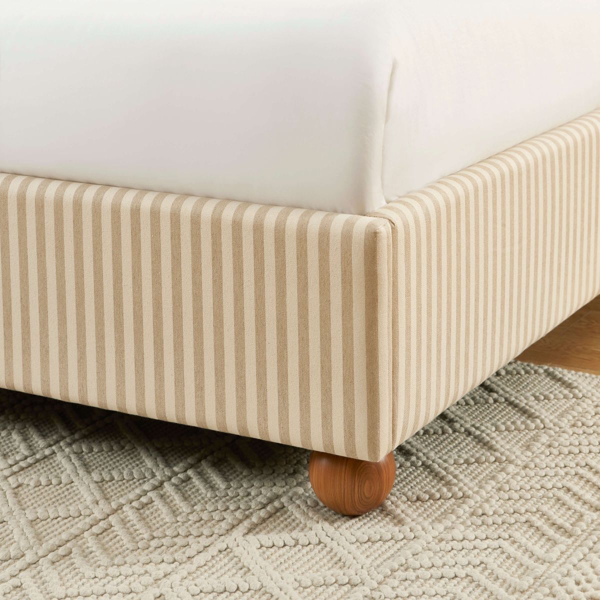 Pensé pour les chambres où le style ne fait pas de compromis sur le confort, le lit coffre PILKA séduit par son design épuré et son revêtement en tissu rayé beige. Sa tête de lit rembourrée et légèrement incurvée invite à la détente, tandis que ses lignes sobres lui permettent de s'intégrer facilement dans une chambre moderne, scandinave ou classique.