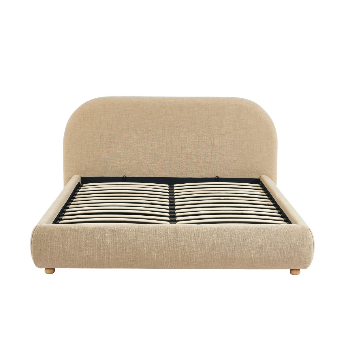 Avec ses lignes arrondies et son revêtement en tissu bouclette beige, le lit coffre JELLY s'impose comme une pièce élégante et chaleureuse dans la chambre. Son style contemporain et sa texture douce créent une ambiance cocooning idéale pour un espace nuit à la fois raffiné et confortable.