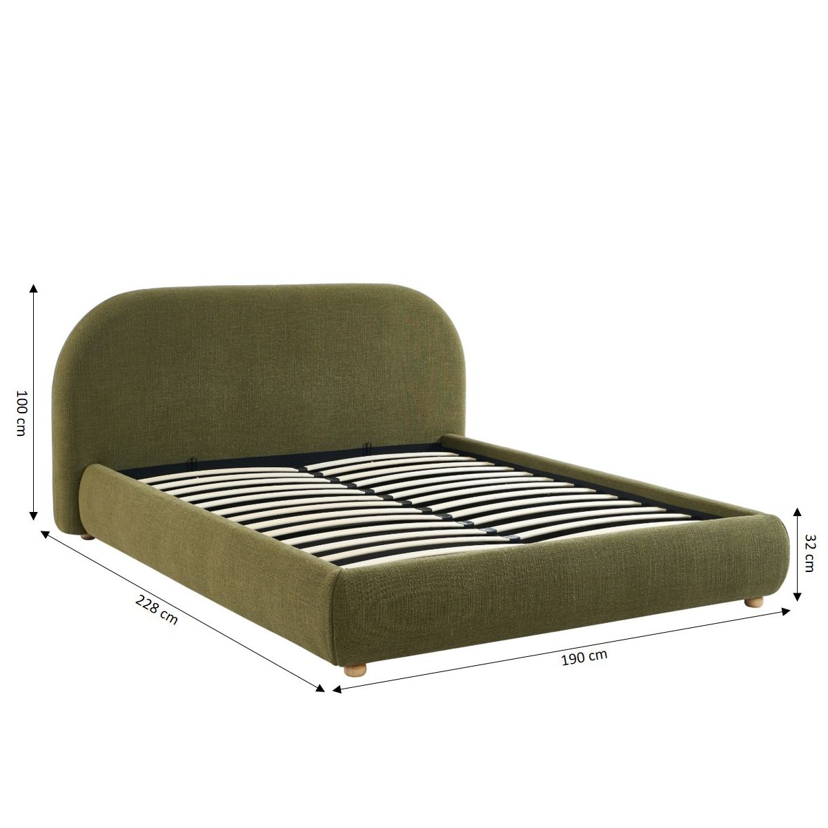 Lit coffre JELLY 160x200 tissu bouclette vert sommier inclus