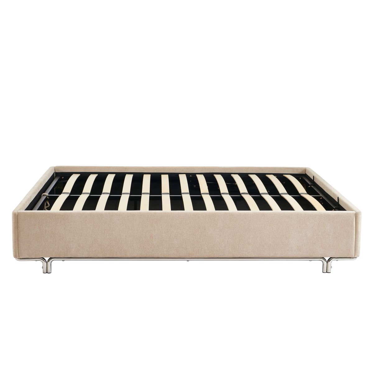 Lit coffre MAGGY 160x200 tissu chenille beige sommier inclus