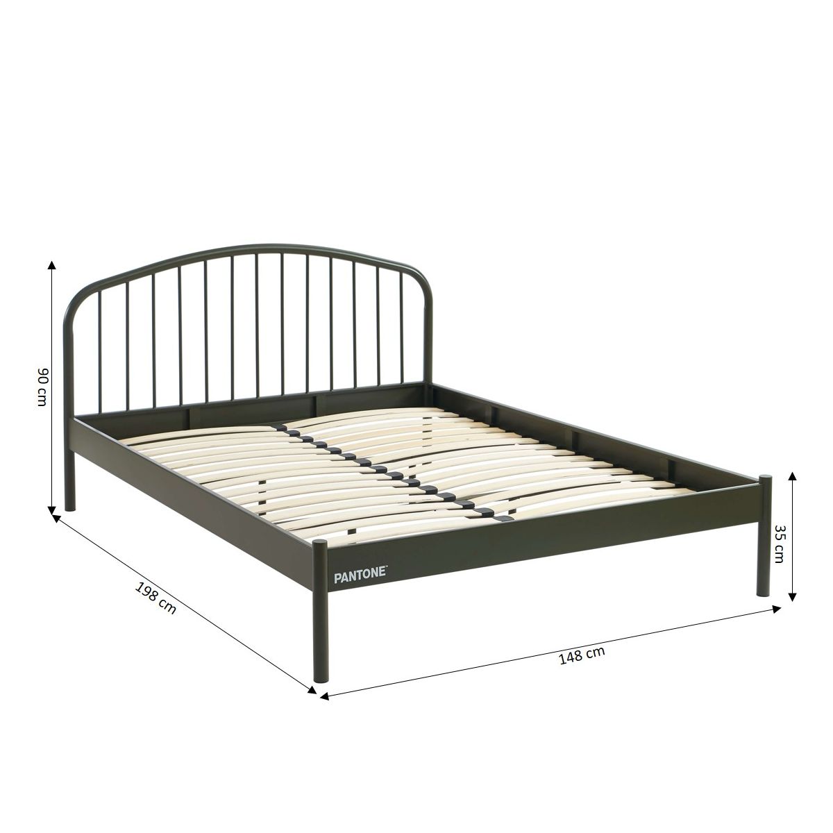 Grâce à sa structure en métal et son sommier à 32 lattes inclus, le lit PANTONE garantit un excellent maintien pour des nuits sereines. Conçu pour durer, il supporte jusqu'à 220 kg et repose sur des pieds en métal munis de patins en plastique pour protéger votre sol. Avec ses dimensions de L198 x P147 x H90 cm, ce lit 140x190 cm s'intègre facilement dans une chambre adulte, ado ou d'ami. Il combine fonctionnalité et esthétique pour créer un espace de repos aussi confortable que stylé.