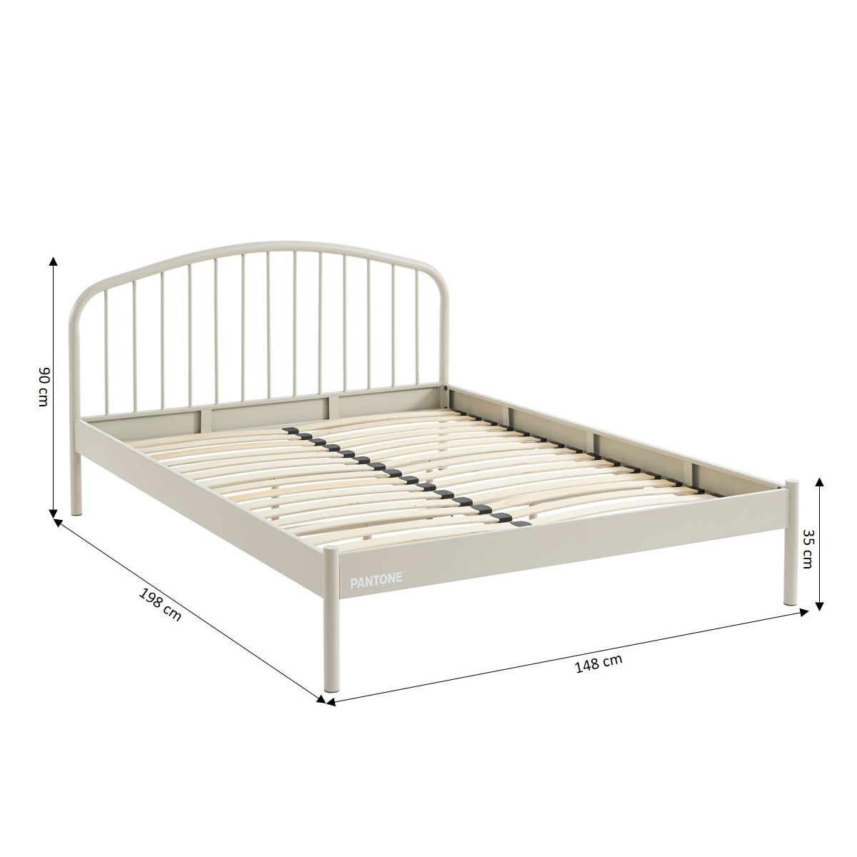 Grâce à sa structure en métal et son sommier à 32 lattes inclus, le lit PANTONE garantit un excellent maintien pour des nuits sereines. Conçu pour durer, il supporte jusqu'à 220 kg et repose sur des pieds en métal munis de patins en plastique pour protéger votre sol. Avec ses dimensions de L198 x P147 x H90 cm, ce lit 140x190 cm s'intègre facilement dans une chambre adulte, ado ou d'ami. Il combine fonctionnalité et esthétique pour créer un espace de repos aussi confortable que stylé.