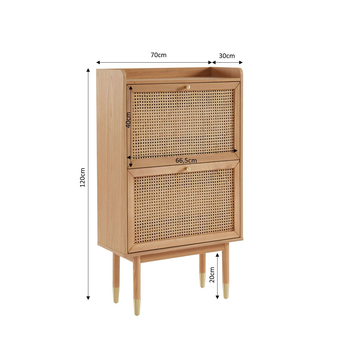Vous cherchez un meuble à chaussures pour votre entrée ? Optez pour la gamme LÉON et son magnifique cannage en rotin ! Ce meuble à chaussures, pratique et au style rétro, vous permettra d'optimiser vos espaces en y apportant de nouveaux espaces de rangements.