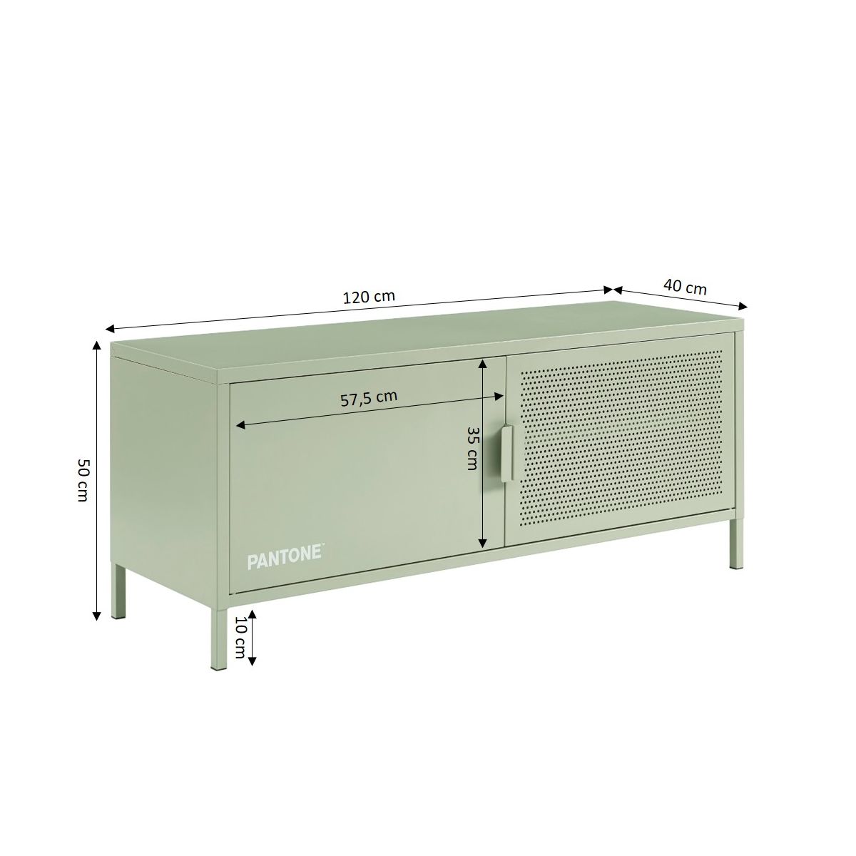 Apportez du caractère à votre salon avec le meuble TV en métal PANTONE. Son look industriel et sa teinte tendance s'associent à une belle capacité de rangement derrière ses deux portes.