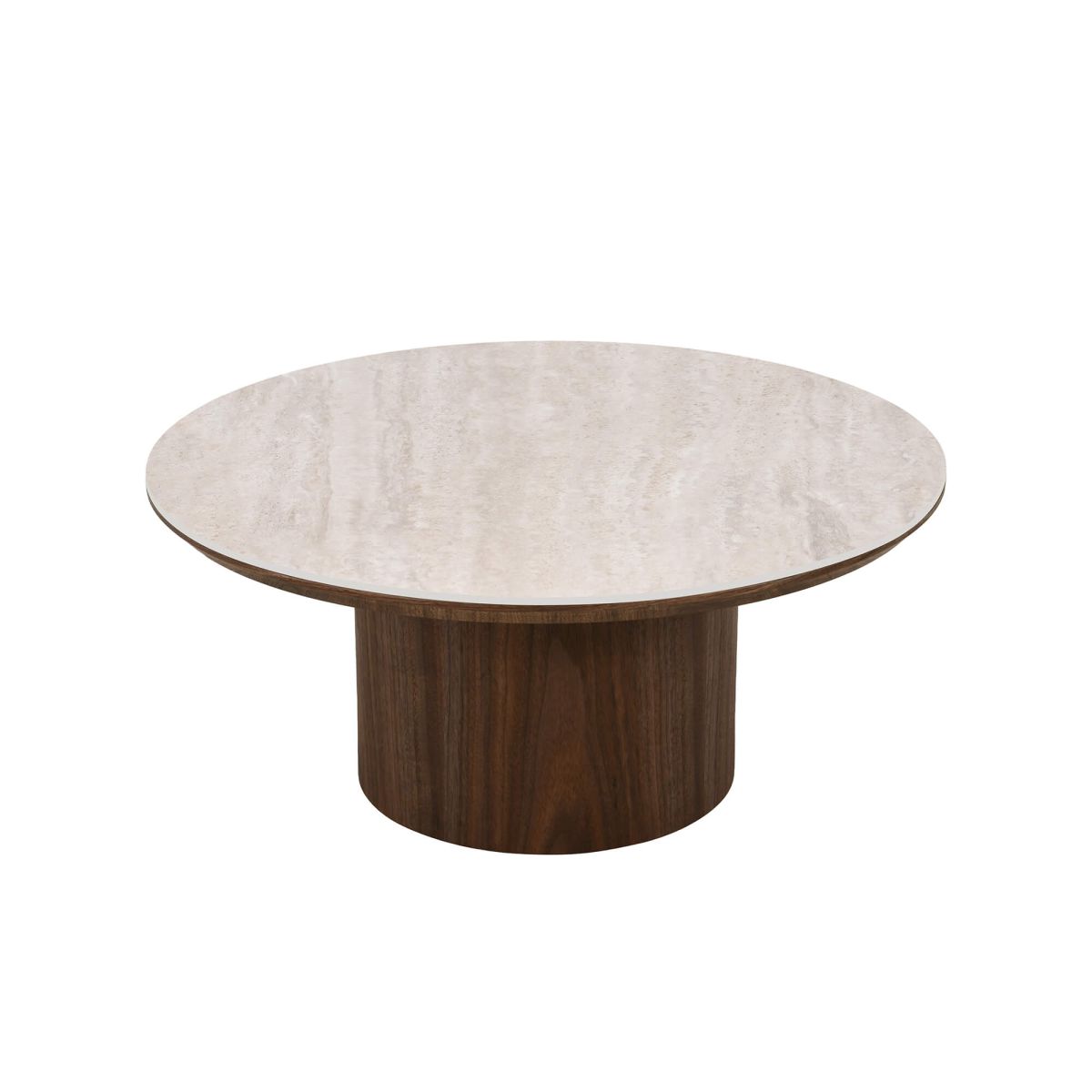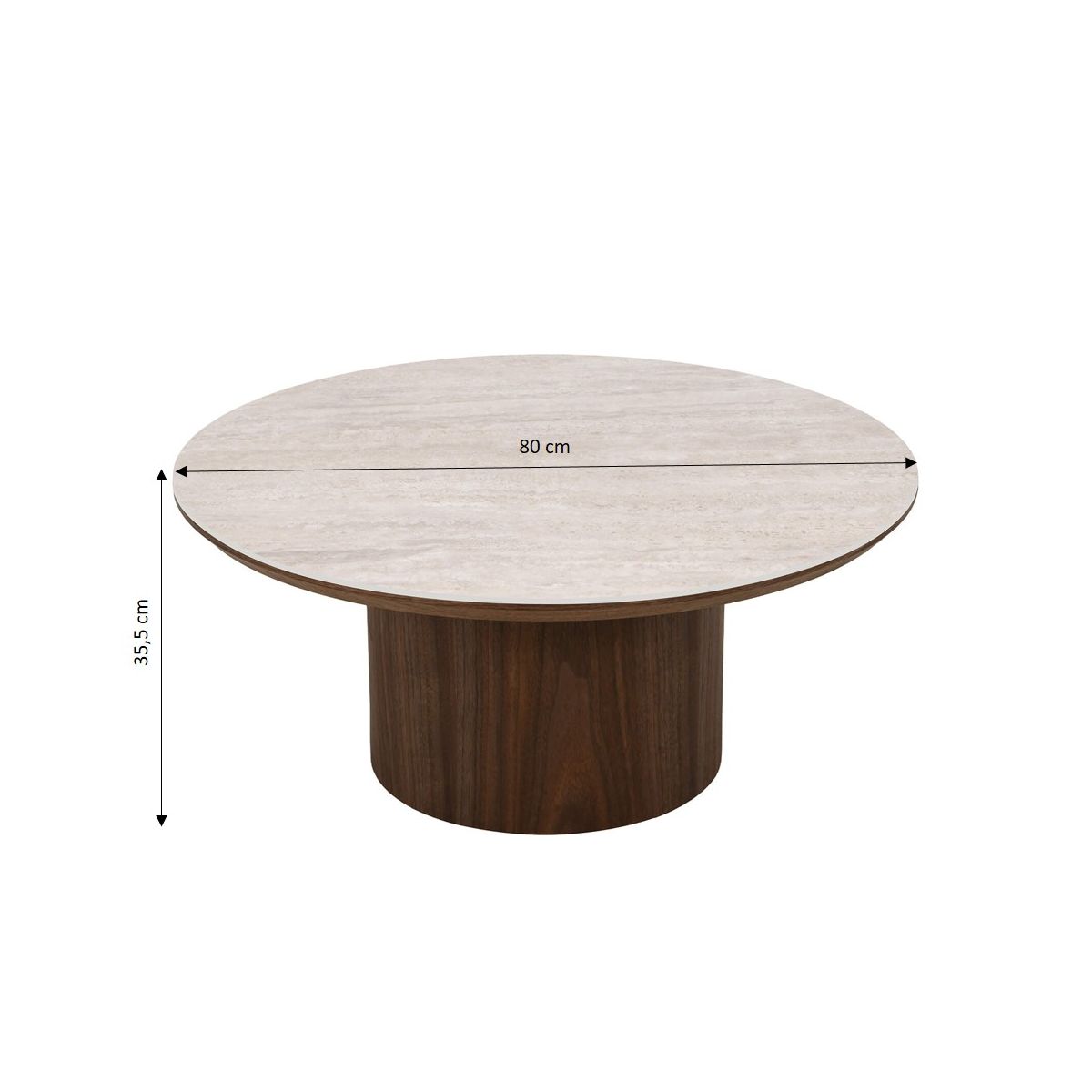 Le plateau en céramique effet travertin apporte un aspect minéral inspiré de la pierre naturelle. Son rendu texturé et lumineux donne du relief à la table tout en conservant les avantages pratiques de la céramique. Résistante et facile à entretenir, cette surface est parfaitement adaptée à un usage quotidien pour poser boissons, livres ou objets décoratifs.