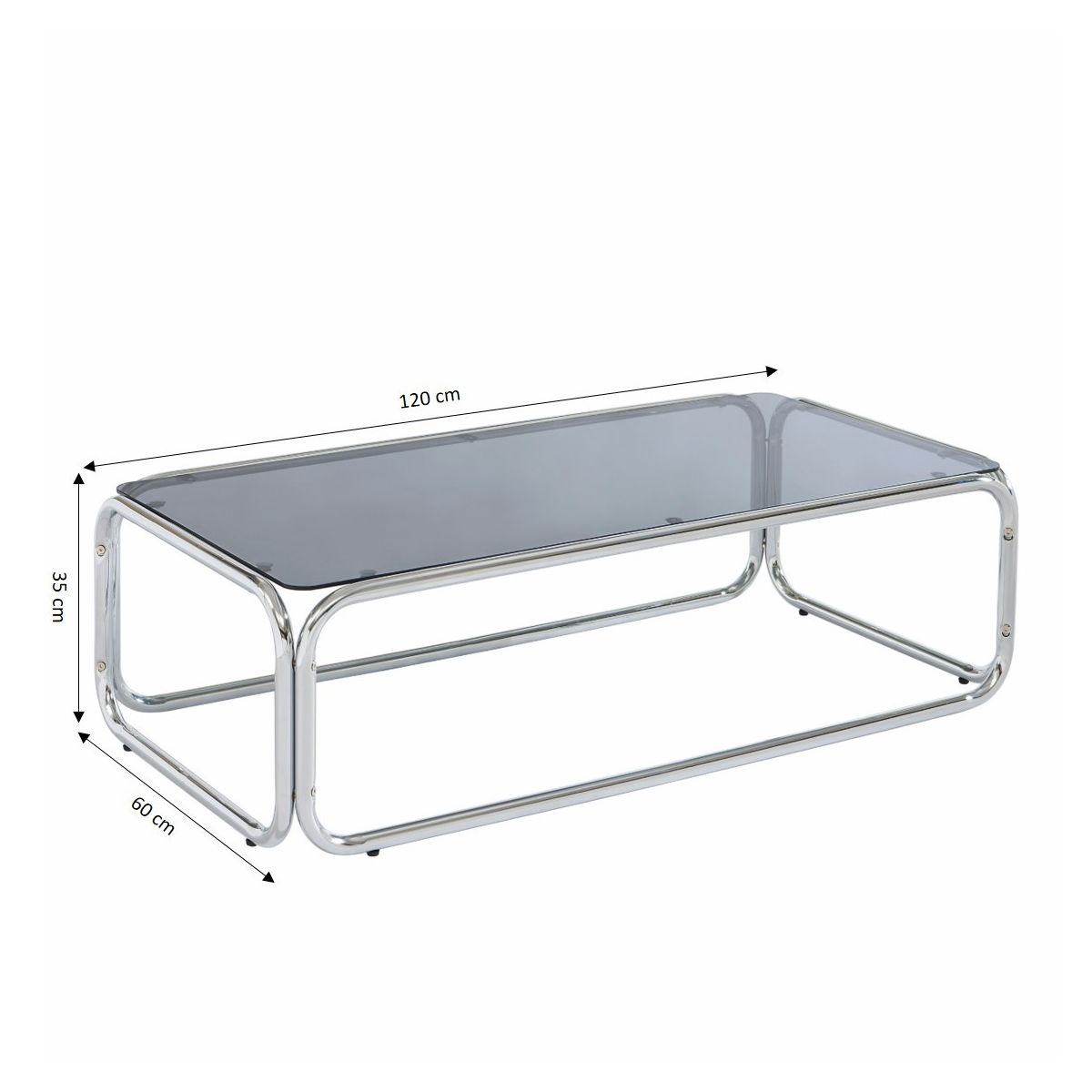 Avec ses dimensions de 120 x 60 cm et sa hauteur de 35 cm, elle offre une surface idéale pour y déposer vos objets du quotidien ainsi que votre décoration. Son design épuré et ses lignes arrondies lui donnent une touche d'élégance, tandis que ses pieds chromés garantissent solidité et robustesse. Facile à assembler, elle est livrée à plat pour simplifier le transport.