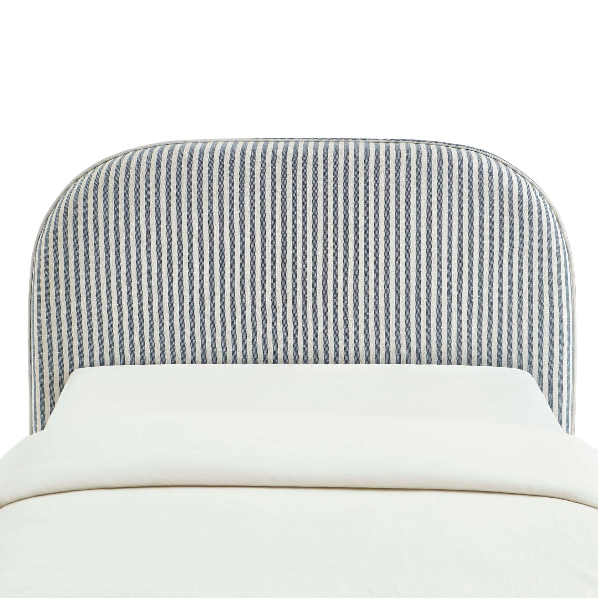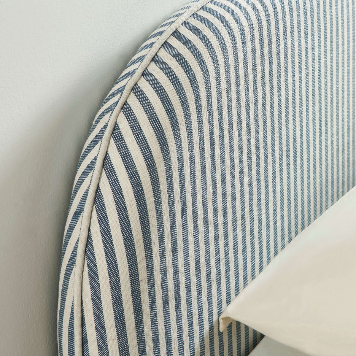 Habillez votre chambre avec élégance grâce à la tête de lit LOUISON en tissu lin rayé, idéale pour un couchage 90x190 cm.