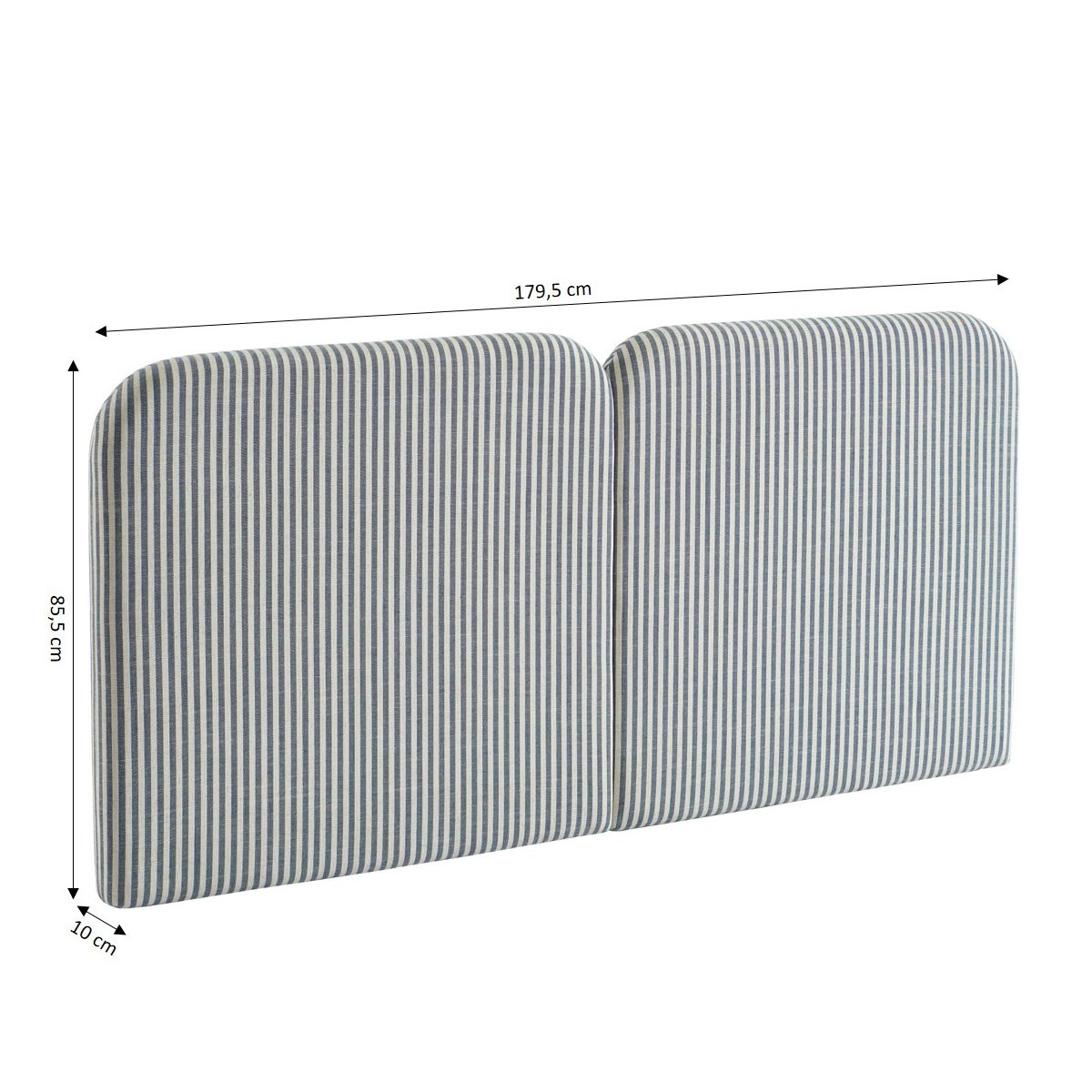 • Tête de lit LOUISON tissu lin rayé blanc et bleu 160cm