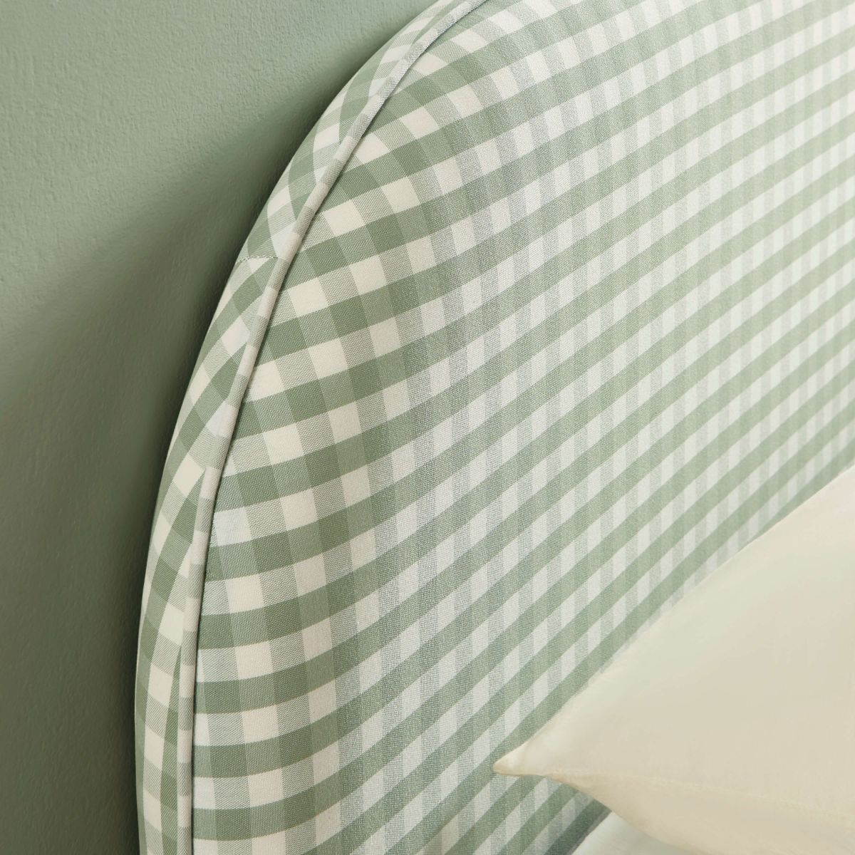 Apportez une touche champêtre à votre chambre avec la tête de lit LOUISON 90cm en tissu vichy vert et blanc, à la fois décorative et confortable.